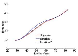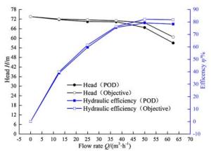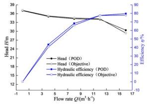 To improve the accuracy and reduce the calculation cost for the inverse problem of centrifugal pump impeller, the new inverse method based on proper orthogonal decomposition (POD) is proposed. The pump blade shape is parameterized by quartic Bezier curve, and the initial snapshots is generated by introducing the perturbation of the blade shape control parameters. The internal flow field and its hydraulic performance is predicted by CFD method. The snapshots vector includes the blade shape parameter and the distribution of blade load. The POD basis for the snapshots set are deduced by proper orthogonal decomposition. The sample vector set is expressed in terms of the linear combination of the orthogonal basis. The objective blade shape corresponding to the objective distribution of blade load is obtained by least square fit. The Iterative correction algorithm for the centrifugal pump blade inverse method based on POD is proposed. The objective blade load distributions are corrected according to the difference of the CFD result and the POD result. The two dimensional and three dimensional blade calculation cases show that the proposed centrifugal pump blade inverse method based on POD have good convergence and high accuracy, and the calculation cost is greatly reduced. After two iterations, the deviation of the blade load and the pump hydraulic performance are limited within 4.0% and 6.0% individually for most of the flow rate range. This paper provides a promising inverse method for centrifugal pump impeller, which will benefit the hydraulic optimization of centrifugal pump.