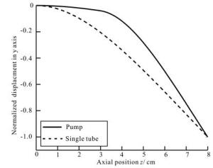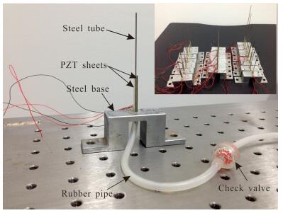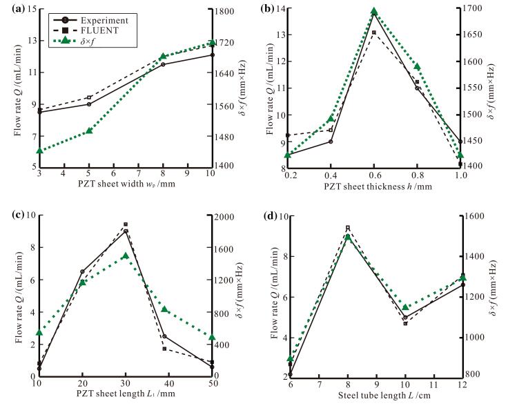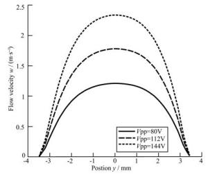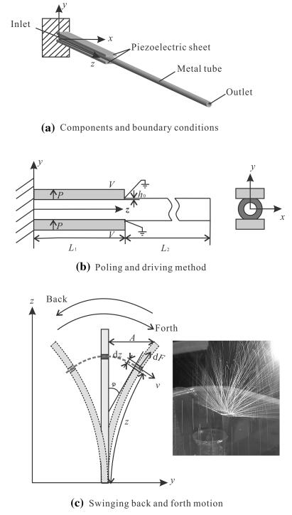 A piezoelectric centrifugal pump was developed previously to overcome the low frequency responses of piezoelectric pumps with check valves and liquid reflux of conventional valveless piezoelectric pumps. However, the electro-mechanical-fluidic analysis on this pump has not been done. Therefore, multi-field analysis and experimental verification on piezoelectrically actuated centrifugal valveless pumps are conducted for liquid transport applications. The valveless pump consists of two piezoelectric sheets and a metal tube with piezoelectric elements pushing the metal tube to swing at the first bending resonant frequency. The centrifugal force generated by the swinging motion will force the liquid out of the metal tube. The governing equations for the solid and fluid domains are established, and the coupling relations of the mechanical, electrical and fluid fields are described. The bending resonant frequency and bending mode in solid domain are discussed, and the liquid flow rate, velocity profile, and gauge pressure are investigated in fluid domain. The working frequency and flow rate concerning different components sizes are analyzed and verified through experiments to guide the pump design. A fabricated prototype with an outer diameter of 2.2 mm and a length of 80 mm produced the largest flow rate of 13.8 mL/min at backpressure of 0.8 kPa with driving voltage of 80 Vpp. By solving the electro-mechanical-fluidic coupling problem, the model developed can provide theoretical guidance on the optimization of centrifugal valveless pump characters.