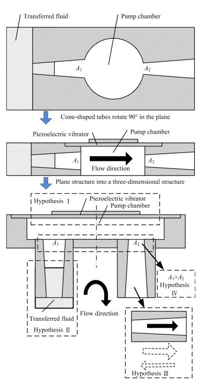 This paper reviews the development of valveless piezoelectric pump with cone-shaped tube chronologically, which have widely potential application in biomedicine and micro-electro-mechanical systems because of its novel principles and deduces the research direction in the future. Firstly, the history of valveless piezoelectric pumps with cone-shaped tubes is reviewed and these pumps are classified into the following types: single pump with solid structure or plane structure, and combined pump with parallel structure or series structure. Furthermore, the function of each type of cone-shaped tubes and pump structures are analyzed, and new directions of potential expansion of valveless piezoelectric pumps with cone-shaped tubes are summarized and deduced. The historical argument, which is provided by the literatures, that for a valveless piezoelectric pump with cone-shaped tubes, cone angle determines the flow resistance and the flow resistance determines the flow direction. The argument is discussed in the reviewed pumps one by one, and proved to be convincing. Finally, it is deduced that bionics is pivotal in the development of valveless piezoelectric pump with cone-shaped tubes from the perspective of evolution of biological structure. This paper summarizes the current valveless piezoelectric pumps with cone-shaped tubes and points out the future development, which may provide guidance for the research of piezoelectric actuators.