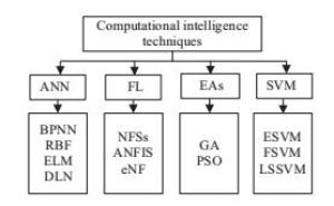 Computational intelligence is one of the most powerful data processing tools to solve complex nonlinear problems, and thus plays a significant role in intelligent fault diagnosis and prediction. However, only few comprehensive reviews have summarized the ongoing efforts of computational intelligence in machinery condition monitoring and fault diagnosis. The recent research and development of computational intelligence techniques in fault diagnosis, prediction and optimal sensor placement are reviewed. The advantages and limitations of computational intelligence techniques in practical applications are discussed. The characteristics of different algorithms are compared, and application situations of these methods are summarized. Computational intelligence methods need to be further studied in deep understanding algorithm mechanism, improving algorithm efficiency and enhancing engineering application. This review may be considered as a useful guidance for researchers in selecting a suitable method for a specific situation and pointing out potential research directions.