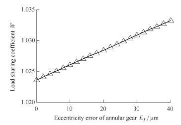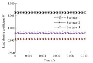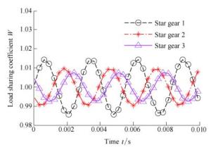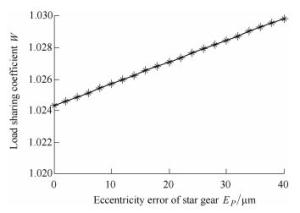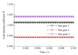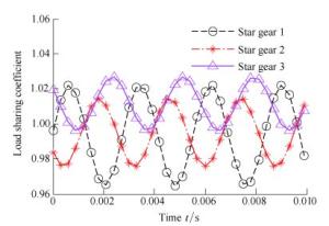 Load sharing behavior is very important for power-split gearing system, star gearing reducer as a new type and special transmission system can be used in many industry fields. However, there is few literature regarding the key multiple-split load sharing issue in main gearbox used in new type geared turbofan engine. Further mechanism analysis are made on load sharing behavior among star gears of star gearing reducer for geared turbofan engine. Comprehensive meshing error analysis are conducted on eccentricity error, gear thickness error, base pitch error, assembly error, and bearing error of star gearing reducer respectively. Floating meshing error resulting from meshing clearance variation caused by the simultaneous floating of sun gear and annular gear are taken into account. A refined mathematical model for load sharing coefficient calculation is established in consideration of different meshing stiffness and supporting stiffness for components. The regular curves of load sharing coefficient under the influence of interactions, single action and single variation of various component errors are obtained. The accurate sensitivity of load sharing coefficient toward different errors is mastered. The load sharing coefficient of star gearing reducer is 1.033 and the maximum meshing force in gear tooth is about 3010 N. This paper provides scientific theory evidences for optimal parameter design and proper tolerance distribution in advanced development and manufacturing process, so as to achieve optimal effects in economy and technology.