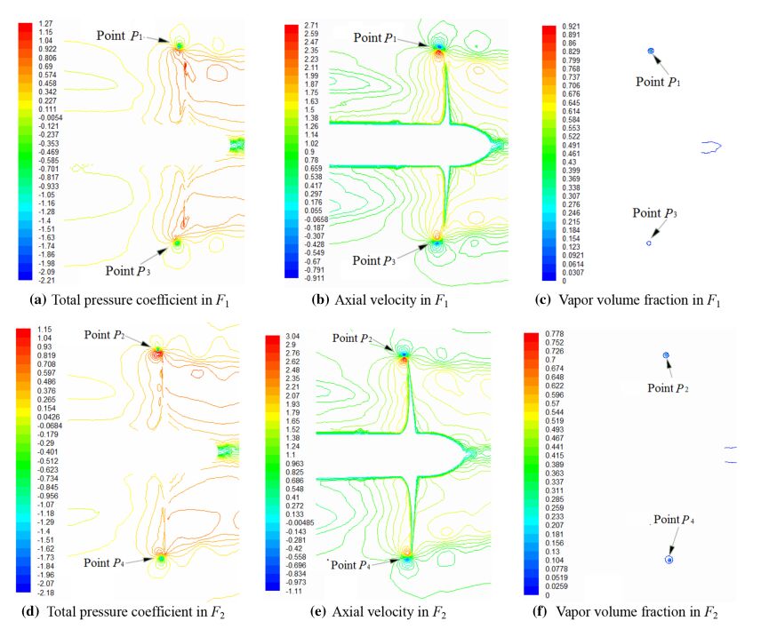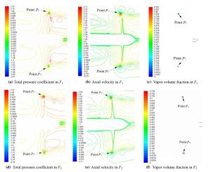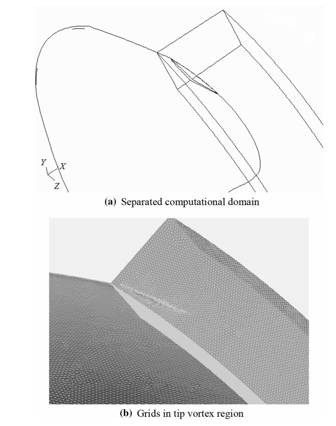 Tip vortex cavitation is the first type of cavitation to take place around most marine propellers. But the numerical prediction of tip vortex cavitation is one of the challenges for propeller wake because of turbulence dissipation during the numerical simulation. Several parameters of computational mesh and numerical algorithm are tested by mean of the predicted length of tip vortex cavtiation to validate a developed method. The predicted length of tip vortex cavtiation is on the increase about 0.4 propeller diameters using the developed numerical method. The predicted length of tip vortex cavtiation by RNG k - ε model is about 3 times of that by SST k - ω model. Therefore, based on the validation of the present approach, the cavitating flows generated by two rotating propellers under a non-uniform inflow are calculated further. The distributions of axial velocity, total pressure and vapor volume fraction in the transversal planes across tip vortex region are shown to be useful in analyzing the feature of the cavitating flow. The strongest kernel of tip vortex cavitation is not at the position most close to blade tip but slightly far away from the region. During the growth of tip vortex cavitation extension, it appears short and thick, and then it becomes long and thin. The pressure fluctuations at the positions inside tip vortex region also validates the conclusion. A key finding of the study is that the grids constructed especially for tip vortex flows by using separated computational domain is capable of decreasing the turbulence dissipation and correctly capturing the feature of propeller tip vortex cavitation under uniform and non-uniform inflows. The turbulence model and advanced grids is important to predict tip vortex cavitation.