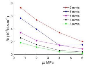 The viscous damping coefficient (VDC) of hydraulic actuators is crucial for system modeling, control and dynamic characteristic analysis. Currently, the researches on hydraulic actuators focus on behavior assessment, promotion of control performance and efficiency. However, the estimation of the VDC is difficult due to a lack of study. Firstly, using two types of hydraulic cylinders, behaviors of the VDC are experimentally examined with velocities and pressure variations. For the tested plunger type hydraulic cylinder, the exponential model B = αv-β, (α > 0, β > 0) or B = α1e-β1v + α2e-β2v(α1, α2 > 0, β1, β2 > 0), fits the relation between the VDC and velocities for a given pressure of chamber with high precision. The magnitude of the VDC decreases almost linearly under certain velocities when increasing the chamber pressure from 0.6 MPa to 6.0 MPa. Furthermore, the effects of the chamber pressures on the VDC of piston and plunge type hydraulic cylinders are different due to different sealing types. In order to investigate the VDC of a plunger type hydraulic actuator drastically, a steady-state numerical model has been developed to describe the mechanism incorporating tandem seal lubrication, back-up ring related friction behaviors and shear stress of fluid. It is shown that the simulated results of VDC agree with the measured results with a good accuracy. The proposed method provides an instruction to predict the VDC in system modeling and analysis.