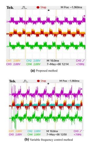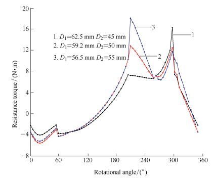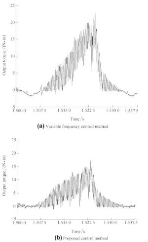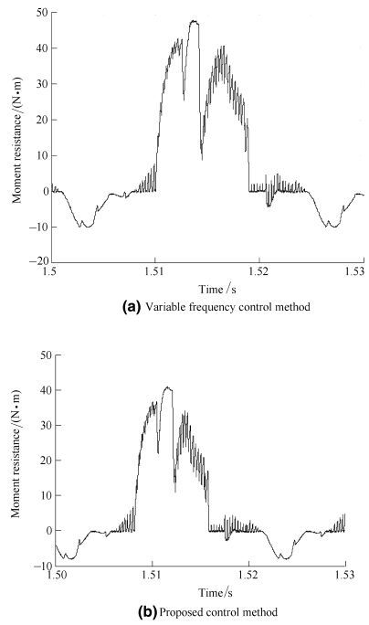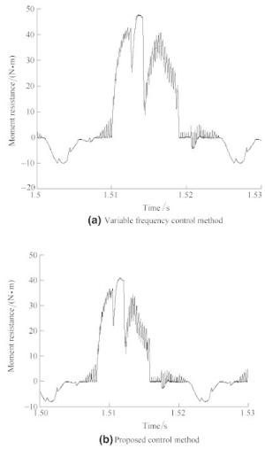 The resistance torque of a piston stage Ⅱ compressor generates strenuous fluctuations in a rotational period, and this can lead to negative influences on the working performance of the compressor. To restrain the strenuous fluctuations in the piston stage Ⅱ compressor, a variable duty-cycle control method based on the resistance torque is proposed. A dynamic model of a stage Ⅱ compressor is set up, and the resistance torque and other characteristic parameters are acquired as the control targets. Then, a variable duty-cycle control method is applied to track the resistance torque, thereby improving the working performance of the compressor. Simulated results show that the compressor, driven by the proposed method, requires lower current, while the rotating speed and the output torque remain comparable to the traditional variable-frequency control methods. A variable duty-cycle control system is developed, and the experimental results prove that the proposed method can help reduce the specific power, input power, and working noise of the compressor to 0.97 kW·m-3·min-1, 0.09 kW and 3.10 dB, respectively, under the same conditions of discharge pressure of 2.00 MPa and a discharge volume of 0.095 m3/ min. The proposed variable duty-cycle control method tracks the resistance torque dynamically, and improves the working performance of a Stage Ⅱ Compressor. The proposed variable duty-cycle control method can be applied to other compressors, and can provide theoretical guidance for the compressor.