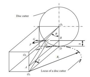Attempts to minimize energy consumption of a tunnel boring machine disc cutter during the process of fragmentation have largely focused on optimizing disccutter spacing, as determined by the minimum specific energy required for fragmentation; however, indentation tests showed that rock deforms plastically beneath the cutters. Equations for thrust were developed for both the traditional, popularly employed disc cutter and anew design based on three-dimensional theory. The respective energy consumption for penetration, rolling, and side-slip fragmentations were obtained. A change in disc-cutter fragmentation angles resulted in a change in the nature of the interaction between the cutter and rock, which lowered the specific energy of fragmentation. During actual field excavations to the same penetration length, the combined energy consumption for fragmentation using the newly designed cutters was 15% lower than that when using the traditional design. This paper presents a theory for energy saving in tunnel boring machines. Investigation results showed that the disc cutters designed using this theory were more durable than traditional designs, and effectively lowered the energy consumption.