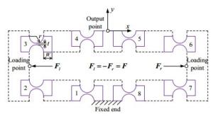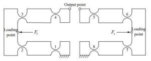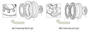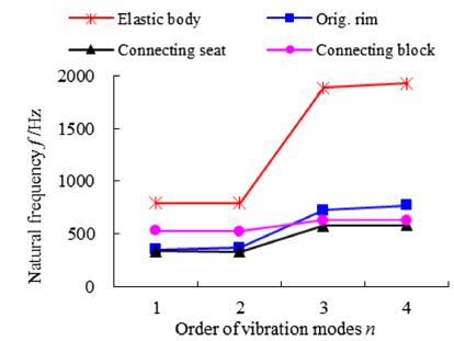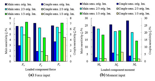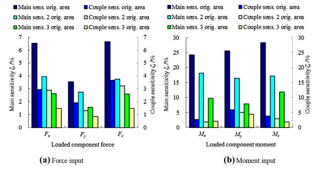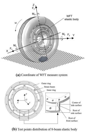 The current research of wheel force transducer (WFT) mainly focuses on test signal processing and decoupling methods based on signal itself, while the WFT structure optimization research related to decreasing the mass and increase the natural frequency and comprehensive sensitivity is not enough. In order to improve the WFT test accuracy, a structure optimization method based on natural frequency and comprehensive sensitivity indicators is put forward. The WFT with 8-beam elastic body is used for the finite element modeling (FEM), in which the following variations are taken into consideration: the connection type of elastic body with modified rim, the number of connection holes, and the respects of strain beam including the shape, the cross sectional area and the length, etc.. The test results shows that the natural frequency of the connecting block type is increased by 65.5% compared with the connecting seat type of elastic body & modified rim, and the main channel sensitivity is improved as well. The results show that the connecting block type will achieve the best comprehensive performance when the number of connecting holes between the elastic body and the modified rim is 20. And the thinner and longer strain beam with smaller cross section area is preferable within the scope of elastic body mechanical strength. This research proposes a novel structure optimization method for WFT which contributes to improve the measurement performance of WFT.