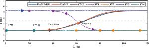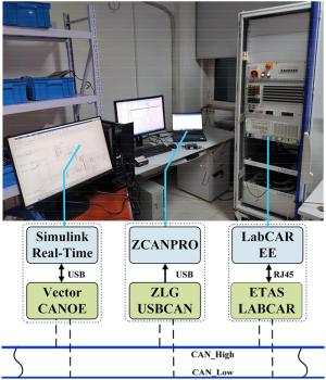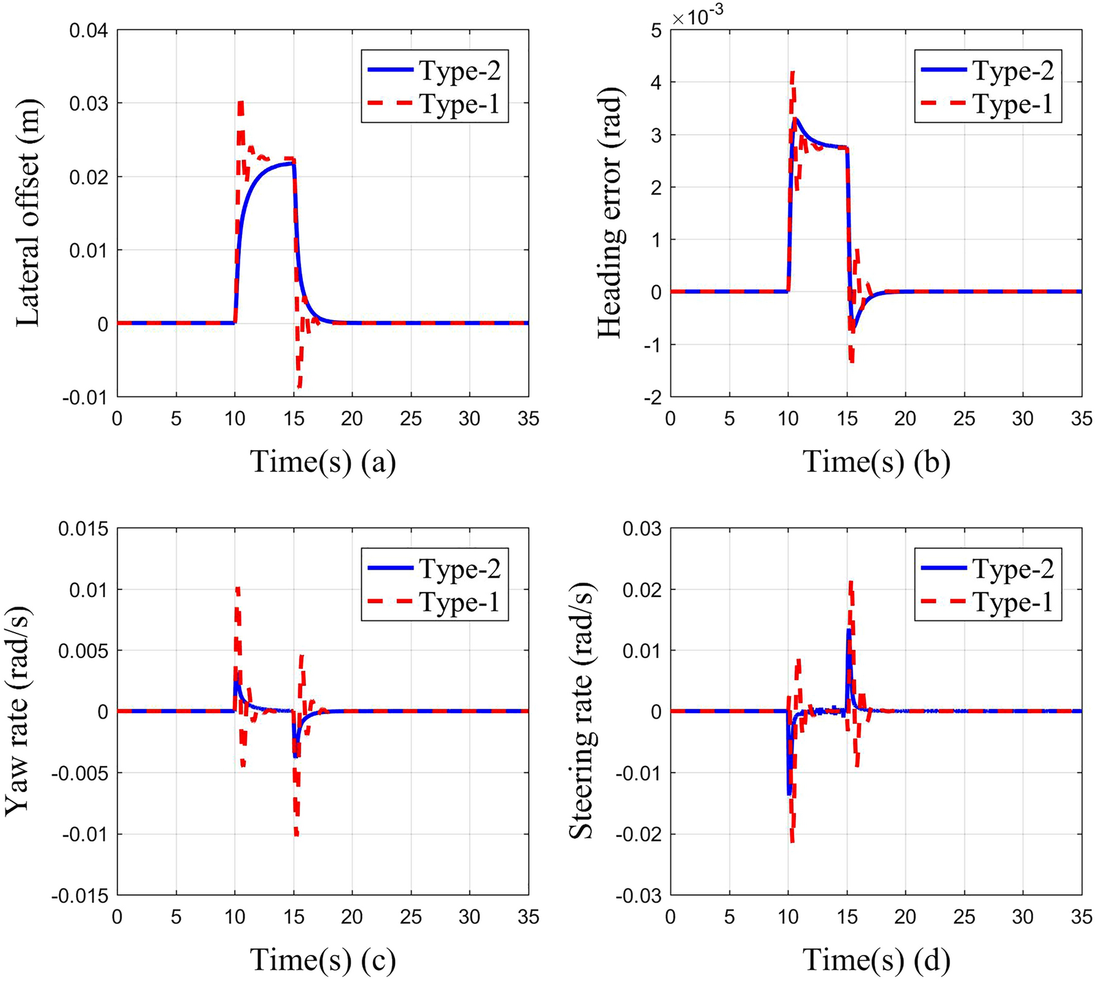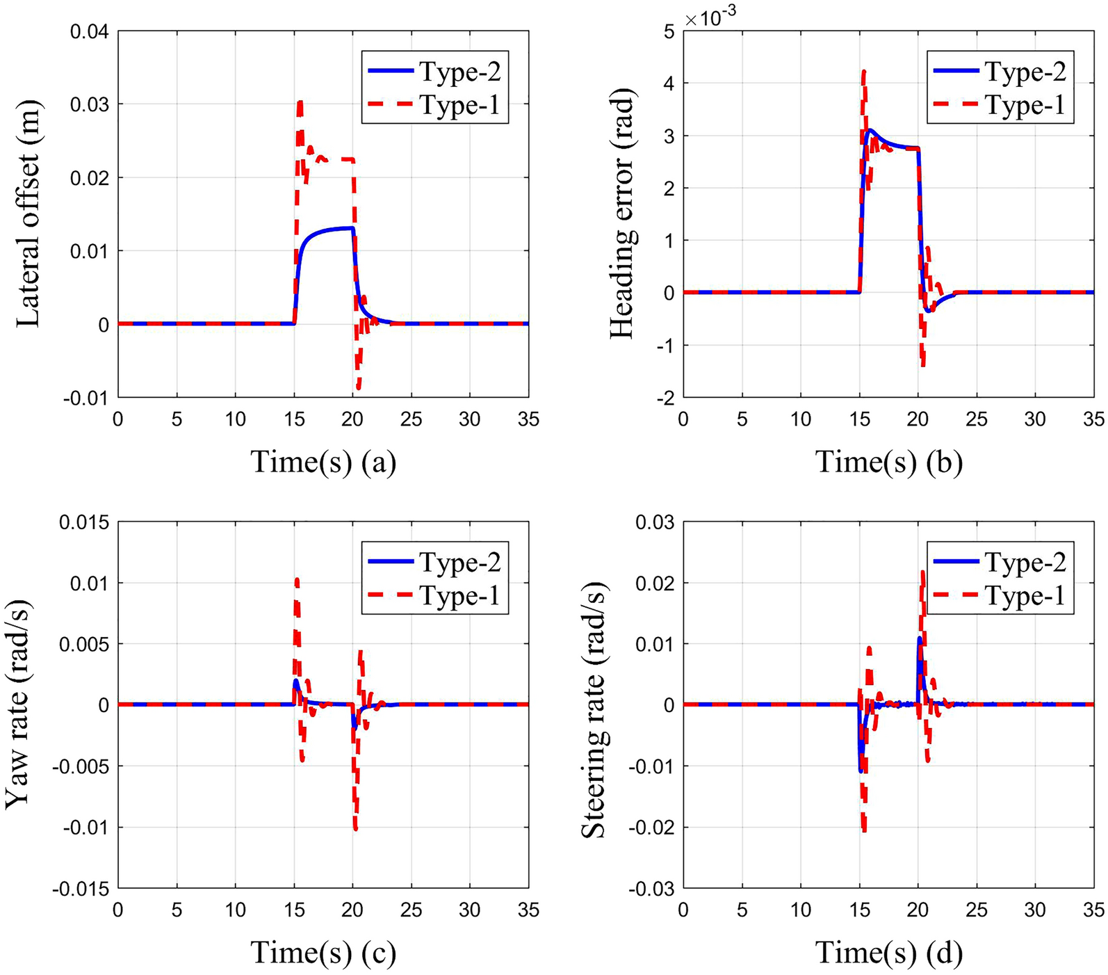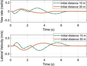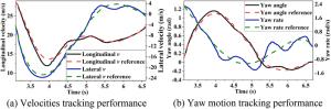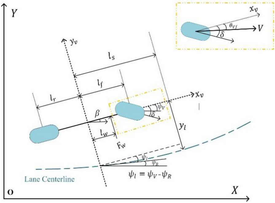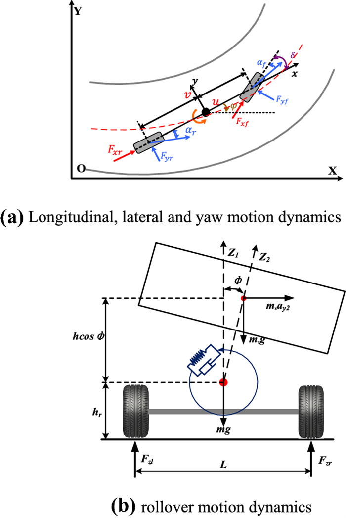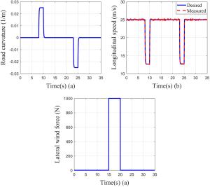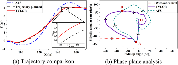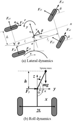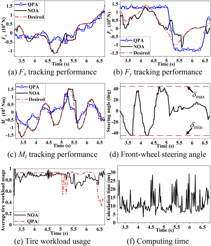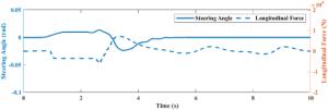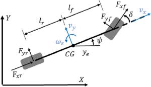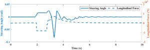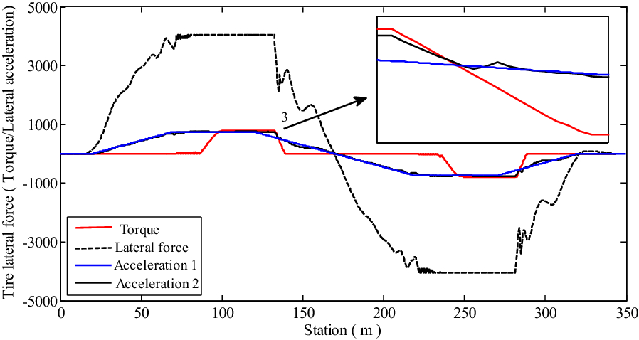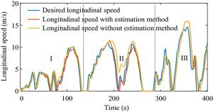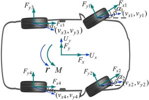 It is a striking fact that the path tracking accuracy of autonomous vehicles based on active front wheel steering is poor under high-speed and large-curvature conditions. In this study, an adaptive path tracking control strategy that coordinates active front wheel steering and direct yaw moment is proposed based on model predictive control algorithm. The recursive least square method with a forgetting factor is used to identify the rear tire cornering stiffness and update the path tracking system prediction model. To adaptively adjust the priorities of path tracking accuracy and vehicle stability, an adaptive strategy based on fuzzy rules is applied to change the weight coefficients in the cost function. An adaptive control strategy for coordinating active front steering and direct yaw moment is proposed to improve the path tracking accuracy under high-speed and large-curvature conditions. To ensure vehicle stability, the sideslip angle, yaw rate and zero moment methods are used to construct optimization constraints based on the model predictive control frame. It is verified through simulation experiments that the proposed adaptive coordinated control strategy can improve the path tracking accuracy and ensure vehicle stability under high-speed and large-curvature conditions.
