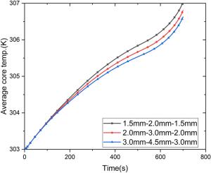 With the development of modern technology and economy, environmental protection and sustainable development have become the focus of global attention. The promotion and development of electric vehicles (EVs) have bright prospects. However, many challenges need to be faced seriously. Under different operating conditions, various safety problems of electric vehicles emerge one after another, especially the hidden danger of battery overheating which threatens the performance of electric vehicles. This paper aims to design and optimize a new indirect liquid cooling system for cylindrical lithium-ion batteries. Various design schemes for different cooling channel structures and cooling liquid inlet directions are proposed, and the corresponding solid-fluid coupling model is established. COMSOL Multiphysics simulation software is adopted to simulate and analyze the cooling systems. An approximate model is constructed using the Kriging method, which is considered to optimize the battery cooling system and improve the optimization results. Sensitivity parameter analysis and the optimization design of system structure are performed through a set of influencing factors in the battery thermal management. The results indicate that the method used in this paper can effectively reduce the maximum core temperature and balance the temperature differences of the battery pack. Compared with the original design, the optimized design, which is based on the non-dominated sorting genetic algorithm (NSGA-II), has an excellent ability in the optimized thermal management system to dissipate thermal energy and keep the overall cooling uniformity of the battery and thermal management system. Furthermore, the optimized system can also prevent thermal runaway propagation under thermal abuse conditions. In summary, this research can provide some practical suggestions and ideas for the engineering and production applications and structural optimization design carried by electric vehicles.