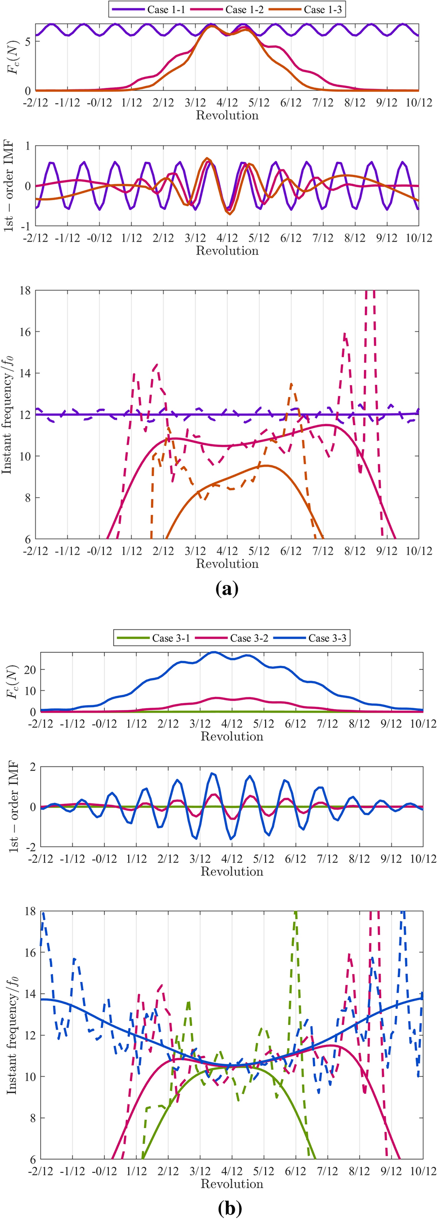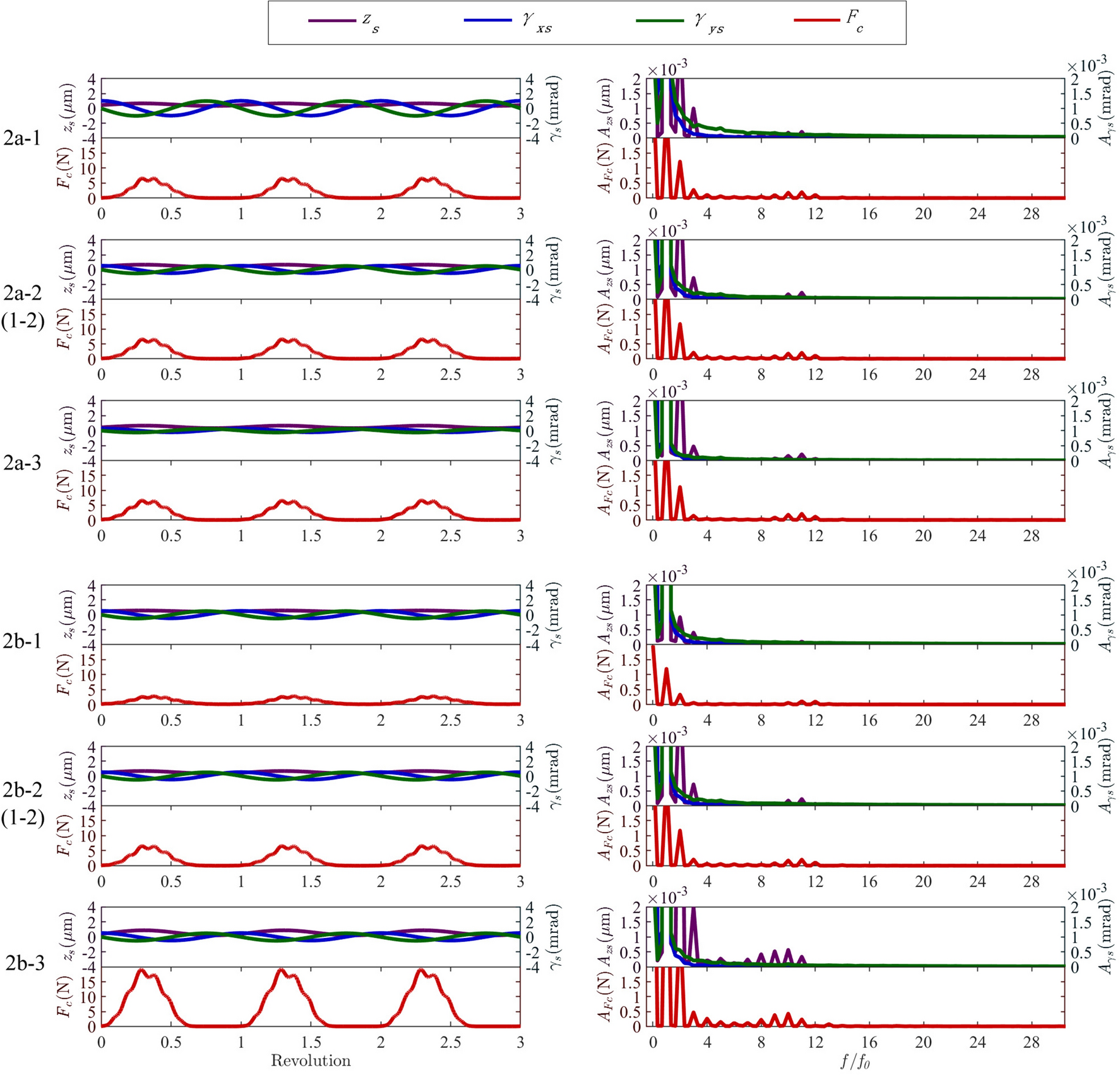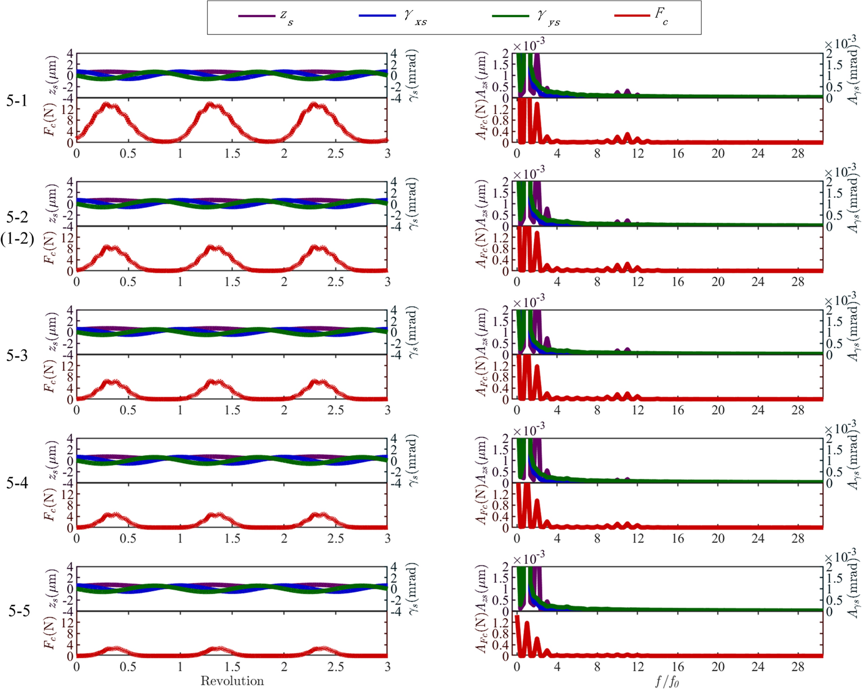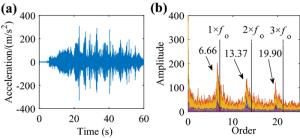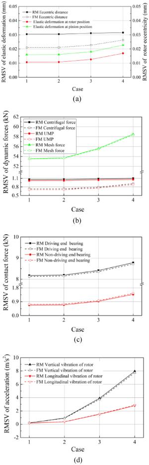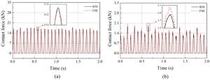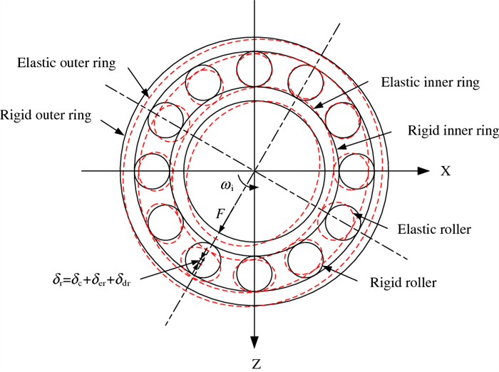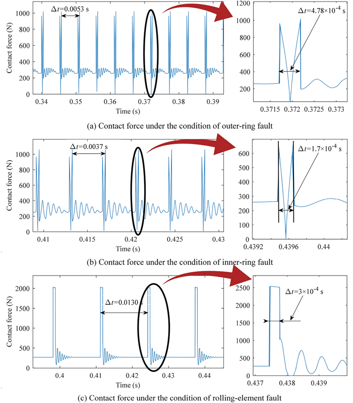 In this study, a dynamic model for the bearing rotor system of a high-speed train under variable speed conditions is established. In contrast to previous studies, the contact stress is simplified in the proposed model and the compensation balance excitation caused by the rotor mass eccentricity considered. The angle iteration method is used to overcome the challenge posed by the inability to determine the roller space position during bearing rotation. The simulation results show that the model accurately describes the dynamics of bearings under varying speed profiles that contain acceleration, deceleration, and speed oscillation stages. The order ratio spectrum of the bearing vibration signal indicates that both the single and multiple frequencies in the simulation results are consistent with the theoretical results. Experiments on bearings with outer and inner ring faults under various operating conditions are performed to verify the developed model.