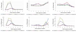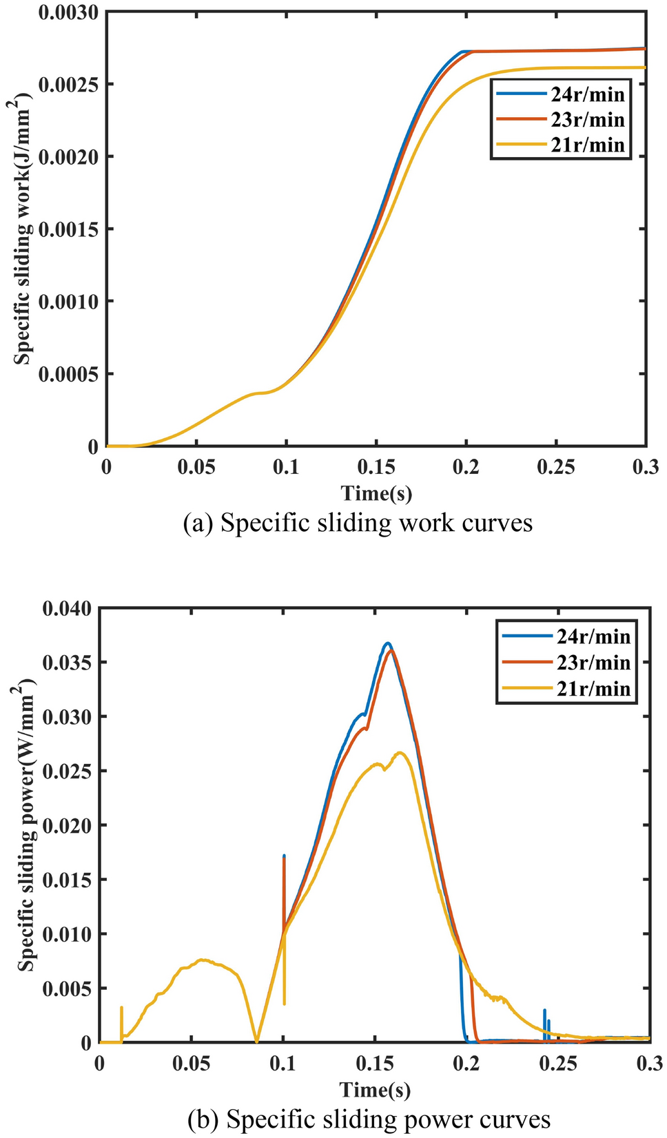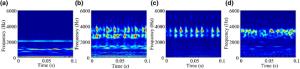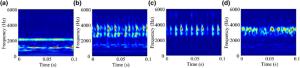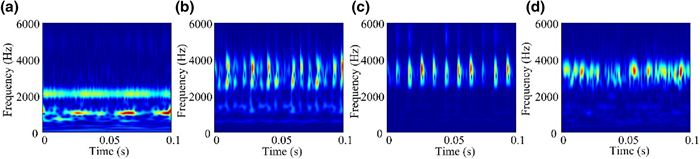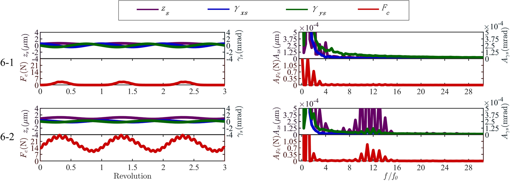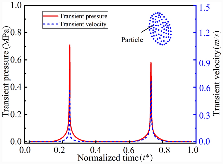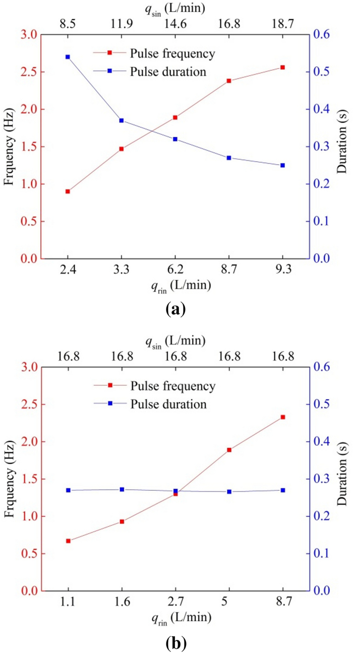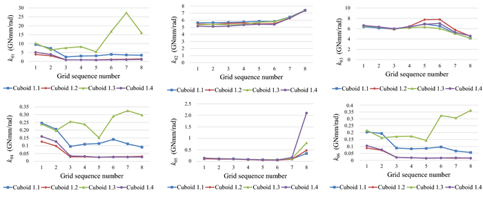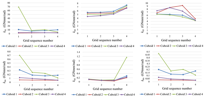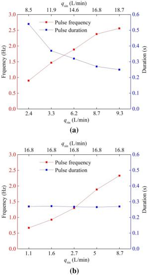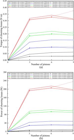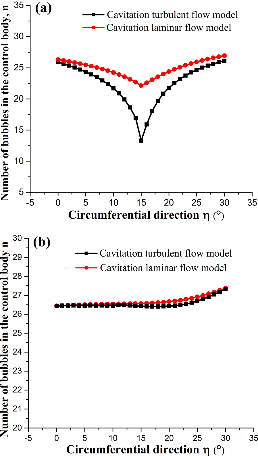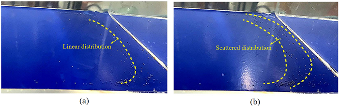 The water-lubricated bearings are usually the state of turbulent cavitating flow under high-speed conditions. And the distribution of cavitation bubbles and the interface effect between the two phases have not been included in previous studies on high-speed water-lubricated bearings. In order to study the influence of interface effect and cavitation bubble distribution on the dynamic characteristics of high-speed water-lubricated spiral groove thrust bearings (SGTB).A turbulent cavitating flow lubrication model based on two-phase fluid and population balance equation of bubbles was established in this paper. Stiffness and the damping coefficients of the SGTB were calculated using the perturbation pressure equations. An experimental apparatus was developed to verify the theoretical model. Simulating and experimental results show that the small-sized bubbles tend to generate in the turbulent cavitating flow when at a high rotary speed, and the bubbles mainly locate at the edges of the spiral groove. The simulating results also show that the direct stiffness coefficients are increased due to cavitation effect, and cross stiffness coefficients and damping coefficients are hardly affected by the cavitation effect. Turbulent effect on the dynamic characteristics of SGTB is much stronger than the cavitating effect