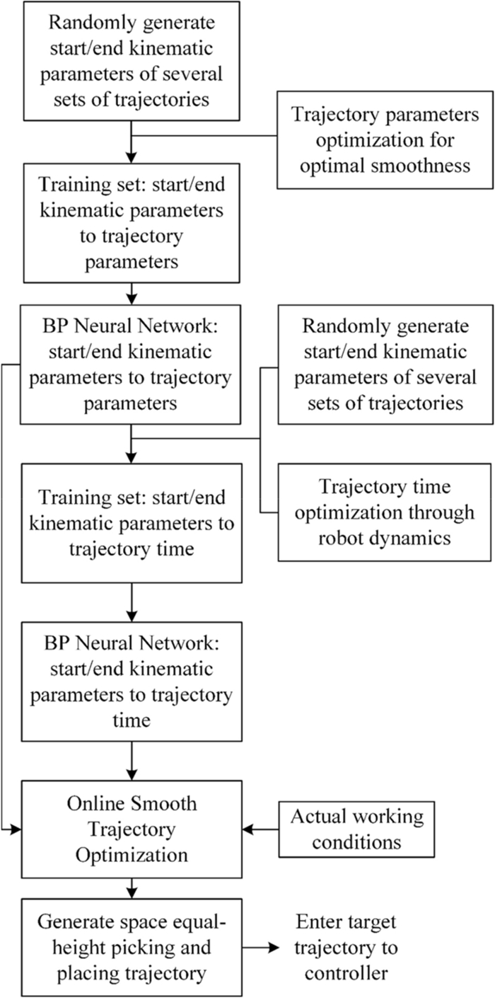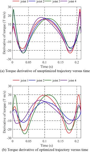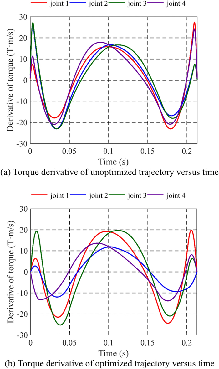 Robot manipulators perform a point-point task under kinematic and dynamic constraints. Due to multi-degree-of-freedom coupling characteristics, it is difficult to find a better desired trajectory. In this paper, a multi-objective trajectory planning approach based on an improved elitist non-dominated sorting genetic algorithm (INSGA-II) is proposed. Trajectory function is planned with a new composite polynomial that by combining of quintic polynomials with cubic Bezier curves. Then, an INSGA-II, by introducing three genetic operators: ranking group selection (RGS), direction-based crossover (DBX) and adaptive precision-controllable mutation (APCM), is developed to optimize travelling time and torque fluctuation. Inverted generational distance, hypervolume and optimizer overhead are selected to evaluate the convergence, diversity and computational effort of algorithms. The optimal solution is determined via fuzzy comprehensive evaluation to obtain the optimal trajectory. Taking a serial-parallel hybrid manipulator as instance, the velocity and acceleration profiles obtained using this composite polynomial are compared with those obtained using a quintic B-spline method. The effectiveness and practicability of the proposed method are verified by simulation results. This research proposes a trajectory optimization method which can offer a better solution with efficiency and stability for a point-to-point task of robot manipulators.