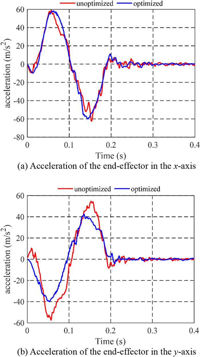 Because of their elastic links and joints, high-speed parallel robots for pick-and-place operations inevitably suffer from residual vibrations that significantly degrade their positioning accuracy. An effective approach based on the input shaping technique is presented in this paper for suppressing the residual vibration in these parallel robots. After addressing the design principle of an input shaper for a parallel robot with flexible actuated joints, a robust optimal input shaper is developed by considering the configuration-dependent flexible modes and minimizing the maximum percentage of residual vibration at the end-effector. The input shaper allows a good overall performance to be achieved throughout the entire workspace. Experimental results on a 4-DOF SCARA-type parallel robot show that the residual vibration of the end-effector is dramatically reduced and the dynamic positioning accuracy of the robot significantly improved.
