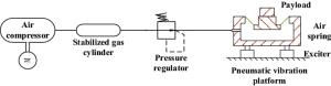 The pneumatic vibration isolator (PVI) plays an increasingly important role in precision manufacturing. In this paper, aiming to detect the performance of the pressure regulator in the PVI system, a PVI testing system with a pressure regulator is designed and developed. Firstly, the structure of the pneumatic spring is presented and analyzed, and the nonlinear stiffness is obtained based on the ideal gas model and material mechanics. Then, according to the working principle and continuity equations of ideal airflow, a dynamic model of the PVI system with a pressure regulator is established. Through the simulation analysis, the vibration isolation performance is improved with the efficient and precise pressure regulator. The average values of both the vibration velocity and transmission rate decrease when the vibration is set to 4, 10, 20 and 40 Hz, respectively. The experiments demonstrate the reliability and effectiveness of the pressure regulator. This achievement will become an important basis for future research concerning precision manufacturing.