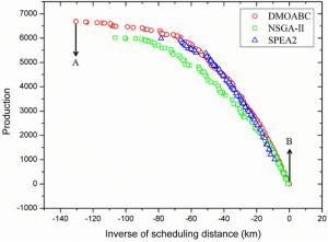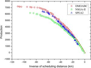 With the continuous development of science and technology, electronic devices have begun to enter all aspects of human life, becoming increasingly closely related to human life. Users have higher quality requirements for electronic devices. Electronic device testing has gradually become an irreplaceable engineering process in modern manufacturing enterprises to guarantee the quality of products while preventing inferior products from entering the market. Considering the large output of electronic devices, improving the testing efficiency while reducing the testing cost has become an urgent problem to be solved. This study investigates the electronic device testing machine allocation problem (EDTMAP), aiming to improve the production of electronic devices and reduce the scheduling distance among testing machines through reasonable machine allocation. First, a mathematical model was formulated for the EDTMAP to maximize both production and the scheduling distance among testing machines. Second, we developed a discrete multi-objective artificial bee colony (DMOABC) algorithm to solve EDTMAP. A crossover operator and local search operator were designed to improve the exploration and exploitation of the algorithm, respectively. Numerical experiments were conducted to evaluate the performance of the proposed algorithm. The experimental results demonstrate the superiority of the proposed algorithm compared with the non-dominated sorting genetic algorithm Ⅱ (NSGA-Ⅱ) and strength Pareto evolutionary algorithm 2 (SPEA2). Finally, the mathematical model and DMOABC algorithm were applied to a real-world factory that tests radio-frequency modules. The results verify that our method can significantly improve production and reduce the scheduling distance among testing machines.