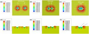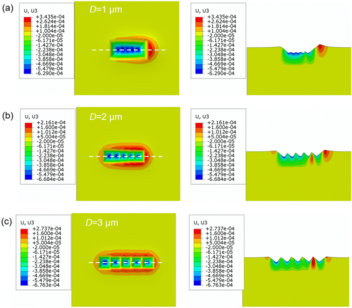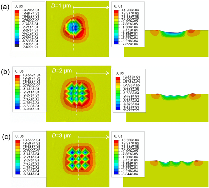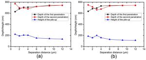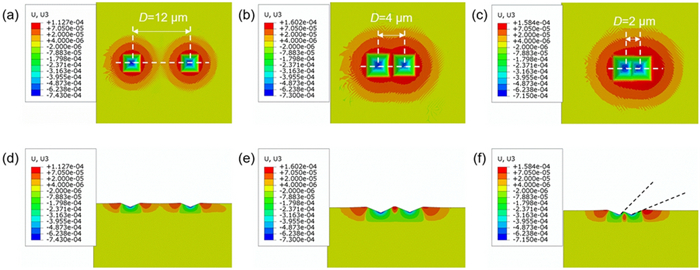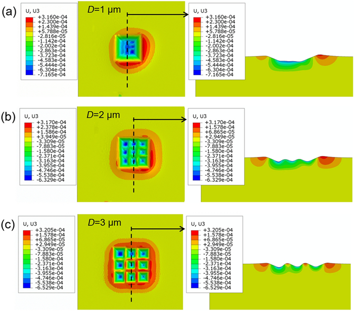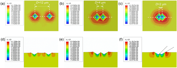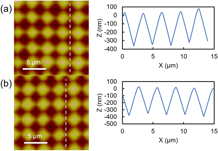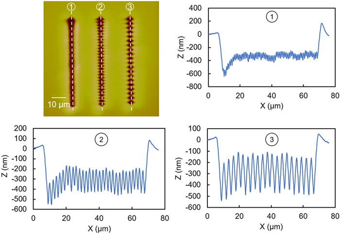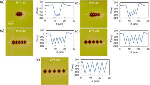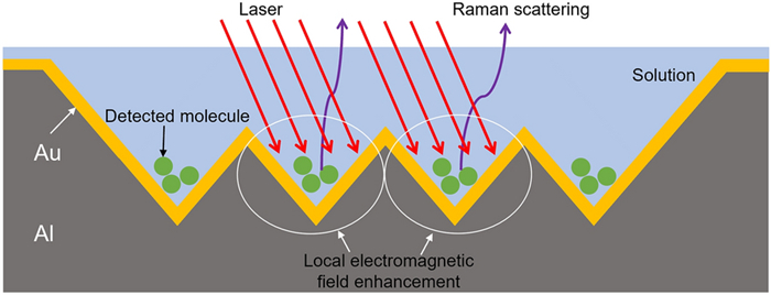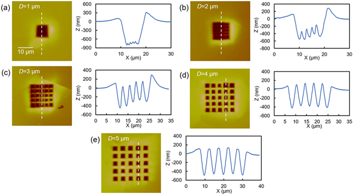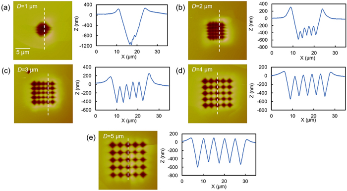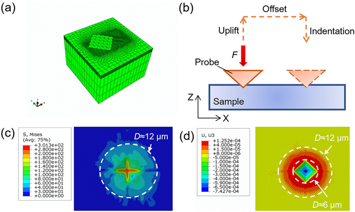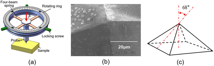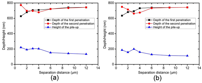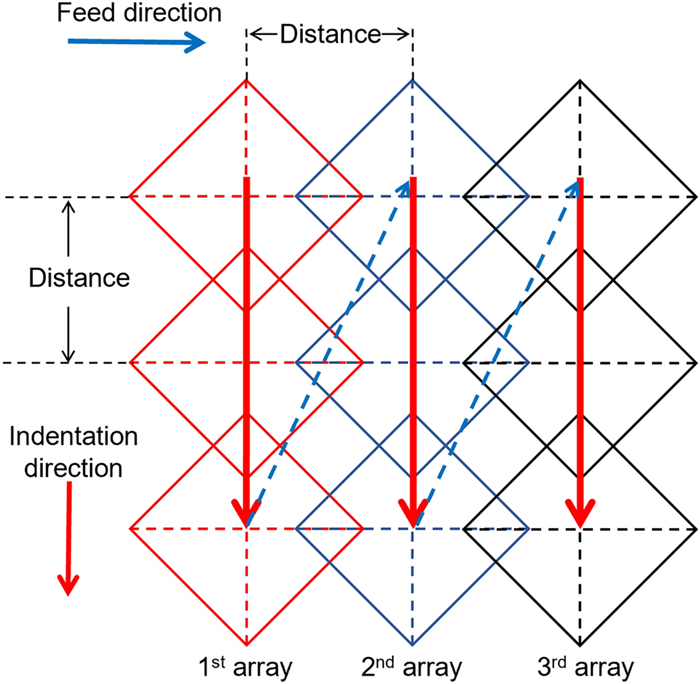 This paper presents a probe-based force-controlled nanoindentation method to fabricate ordered micro/nanostructures. Both the experimental and finite element simulation approaches are employed to investigate the influence of the interval between the adjacent indentations and the rotation angle of the probe on the formed micro/nanostructures. The non-contacting part between indenter and the sample material and the height of the material pile-up are two competing factors to determine the depth relationship between the adjacent indentations. For the one array indentations, nanostructures with good depth consistency and periodicity can be formed after the depth of the indentation becoming stable, and the variation of the rotation angle results in the large difference between the morphology of the formed nanostructures at the bottom of the one array indentation. In addition, for the indentation arrays, the nanostructures with good consistency and periodicity of the shape and depth can be generated with the spacing greater than 1 μm. Finally, Raman tests are also carried out based on the obtained ordered micro/nanostructures with Rhodamine probe molecule. The indentation arrays with a smaller spacing lead to better the enhancement effect of the substrate, which has the potential applications in the fields of biological or chemical molecular detection.
