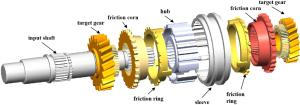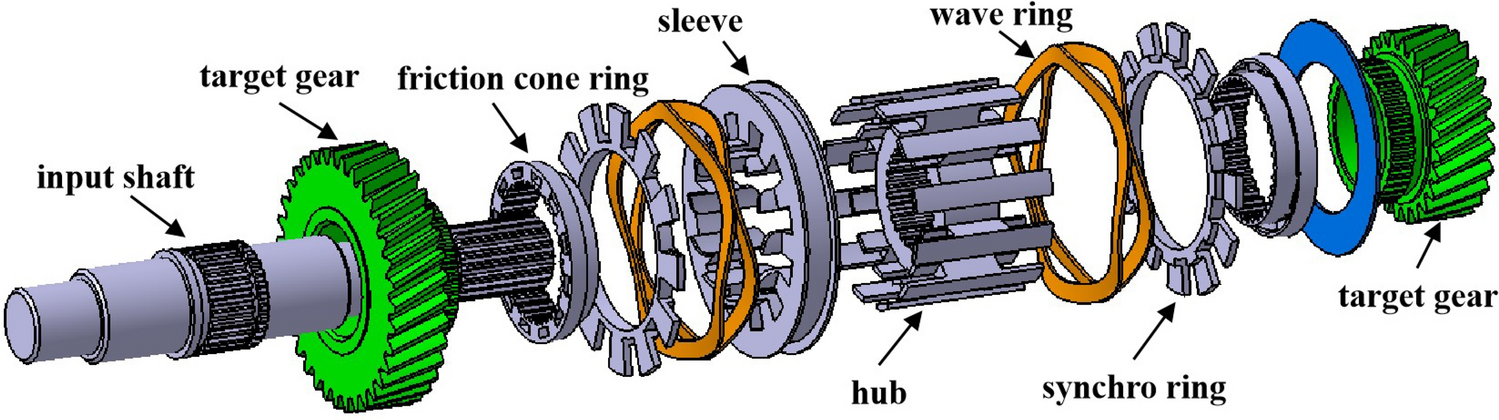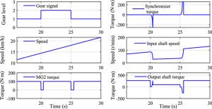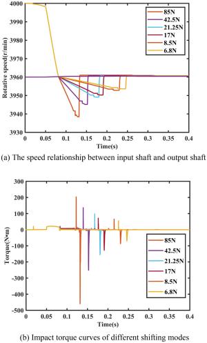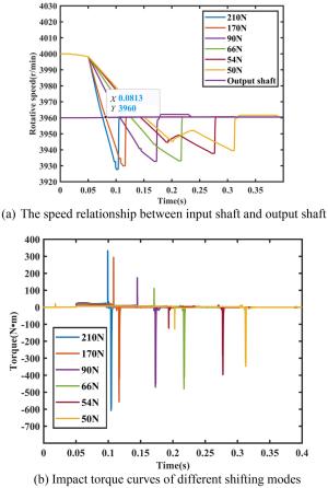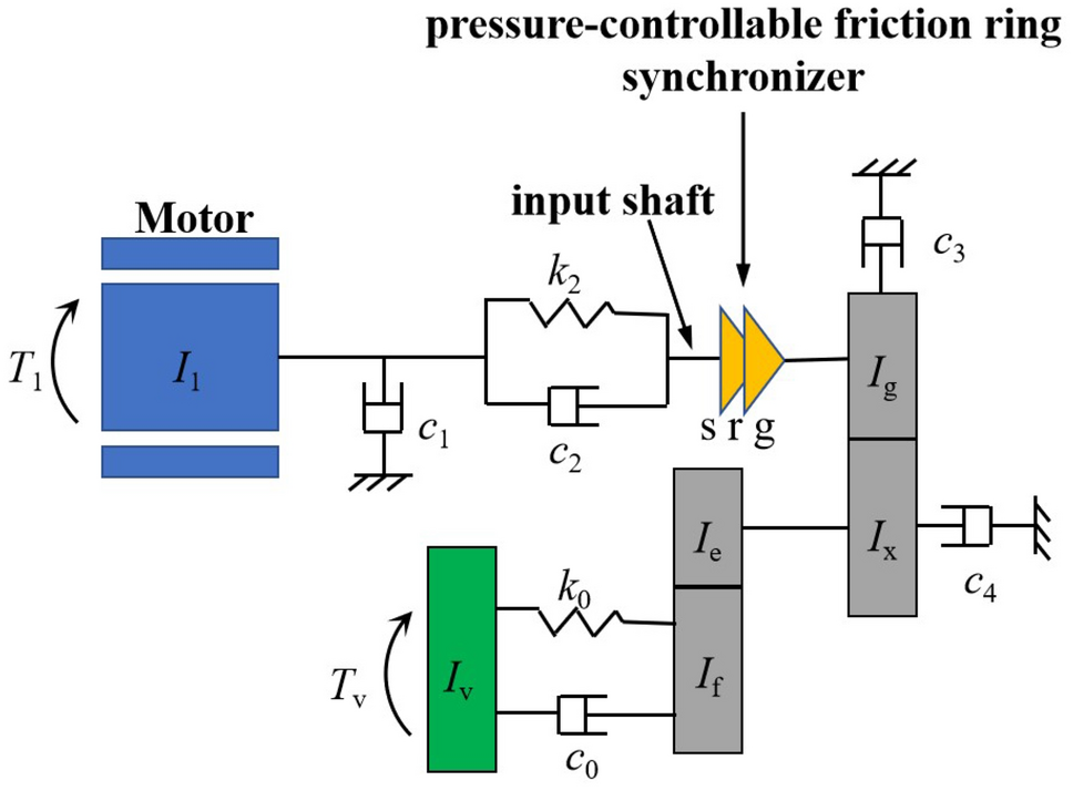 The synchronizer is a key component of automatic mechanical transmission (AMT) equipped in electric vehicles, but the inertial lock-ring synchronizer (ILRS) commonly used there is not suitable especially for pure electric vehicles without a clutch because of big shift impact. To make the shifting process rapid and smooth, a new synchronizer named pressure-controllable friction ring synchronizer (PCFRS) was designed. Initially, the inevitable shortcoming of ILRS was verified by simulation and test. Furthermore, the mechanical characteristics and advantages of the new synchronizer over ILRS were analyzed. Then, the formulations describing the dynamic transmission based on the working mechanism of the PCFRS were established. Finally, the shifting simulation results with PCFRS and ILRS based on the same operating conditions were compared and analyzed. The research shows that the PCFRS can meet the main shifting evaluation index of an AMT without complex control methods, as well as it takes only 0.2406 s to finish the comfortable and zero-speed-difference shifting. The shifting quality of PCFRS is better than that of the ILRS. It lays a foundation for using the new synchronizer as a part of clutchless AMTs equipped in pure electric vehicles.
