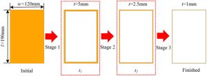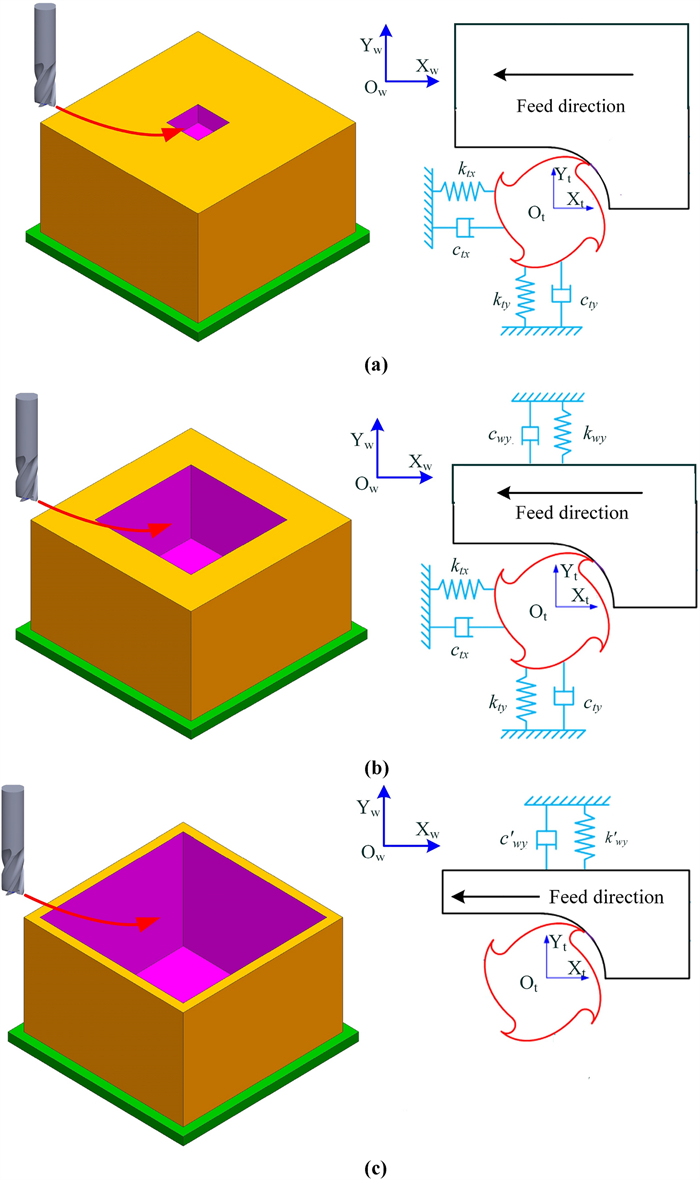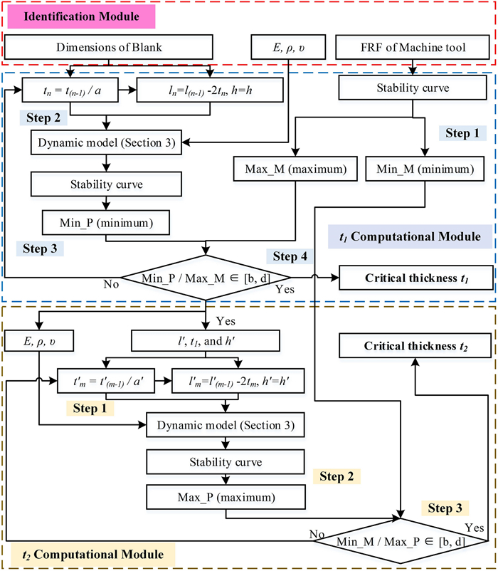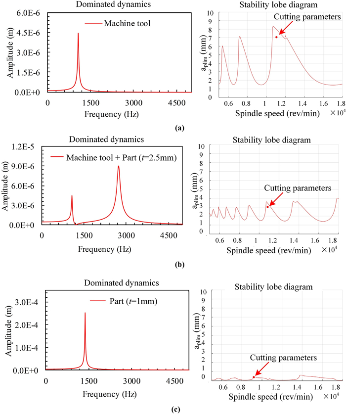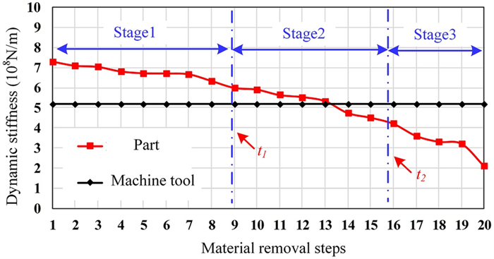 Thin-walled parts are typically difficult-to-cut components due to the complex dynamics in cutting process. The dynamics is variant for part during machining, but invariant for machine tool. The variation of the relative dynamics results in the difference of cutting stage division and cutting parameter selection. This paper develops a novel method for whole cutting process optimization based on the relative varying dynamic characteristic of machining system. A new strategy to distinguish cutting stages depending on the dominated dynamics during machining process is proposed, and a thickness-dependent model to predict the dynamics of part is developed. Optimal cutting parameters change with stages, which can be divided by the critical thickness of part. Based on the dynamics comparison between machine tool and thickness-varying part, the critical thicknesses are predicted by an iterative algorithm. The proposed method is validated by the machining of three benchmarks. Good agreements have been obtained between prediction and experimental results in terms of stages identification, meanwhile, the optimized parameters perform well during the whole cutting process.