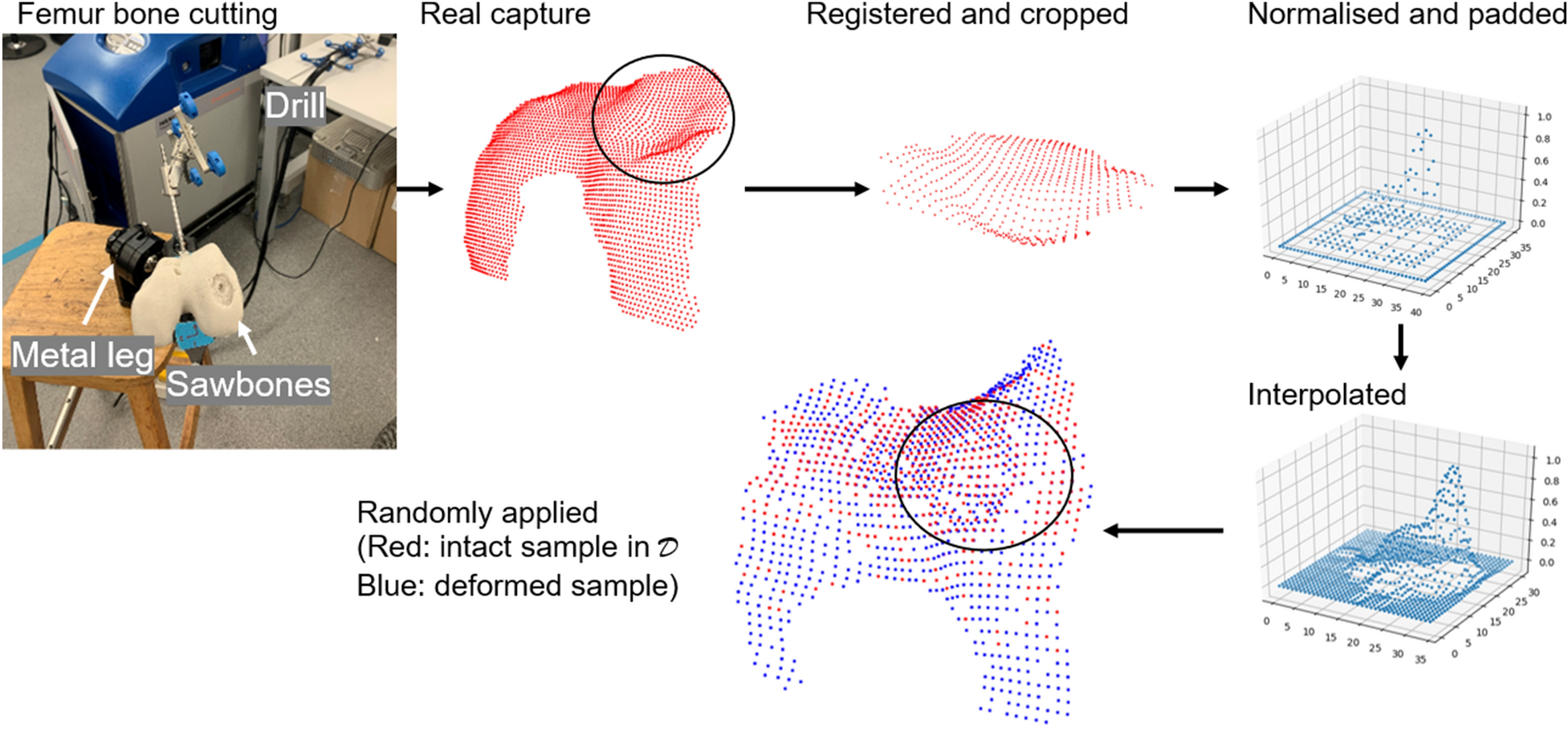 An automatic markerless knee tracking and registration algorithm has been proposed in the literature to avoid the marker insertion required by conventional computer-assisted knee surgery, resulting in a shorter and less invasive surgical workflow. However, such an algorithm considers intact femur geometry only. The bone surface modification is inevitable due to intra-operative intervention. The mismatched correspondences will degrade the reliability of registered target pose. To solve this problem, this work proposed a supervised deep neural network to automatically restore the surface of processed bone. The network was trained on a synthetic dataset that consists of real depth captures of a model leg and simulated realistic femur cutting. According to the evaluation on both synthetic data and real-time captures, the registration quality can be effectively improved by surface reconstruction. The improvement in tracking accuracy is only evident over test data, indicating the need for future enhancement of the dataset and network.