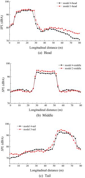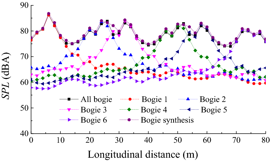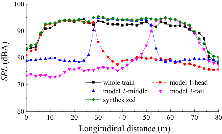 In this paper, the unsteady flow around a high-speed train is numerically simulated by detached eddy simulation method (DES), and the far-field noise is predicted using the Ffowcs Williams-Hawkings (FW-H) acoustic model. The reliability of the numerical calculation is verified by wind tunnel experiments. The superposition relationship between the far-field radiated noise of the local aerodynamic noise sources of the high-speed train and the whole noise source is analyzed. Since the aerodynamic noise of high-speed trains is derived from its different components, a stepwise calculation method is proposed to predict the aerodynamic noise of high-speed trains. The results show that the local noise sources of high-speed trains and the whole noise source conform to the principle of sound source energy superposition. Using the head, middle and tail cars of the high-speed train as noise sources, different numerical models are established to obtain the far-field radiated noise of each aerodynamic noise source. The far-field total noise of high-speed trains is predicted using sound source superposition. A step-by-step calculation of each local aerodynamic noise source is used to obtain the superimposed value of the far-field noise. This is consistent with the far-field noise of the whole train model's aerodynamic noise. The averaged sound pressure level of the far-field longitudinal noise measurement points differs by 1.92 dBA. The step-by-step numerical prediction method of aerodynamic noise of high-speed trains can provide a reference for the numerical prediction of aerodynamic noise generated by long marshalling high-speed trains.