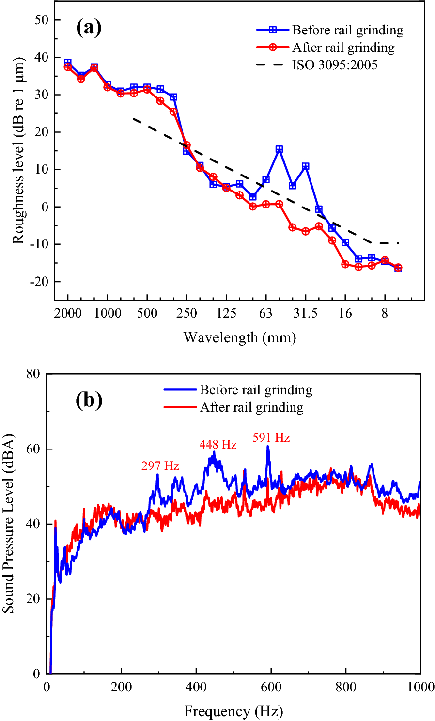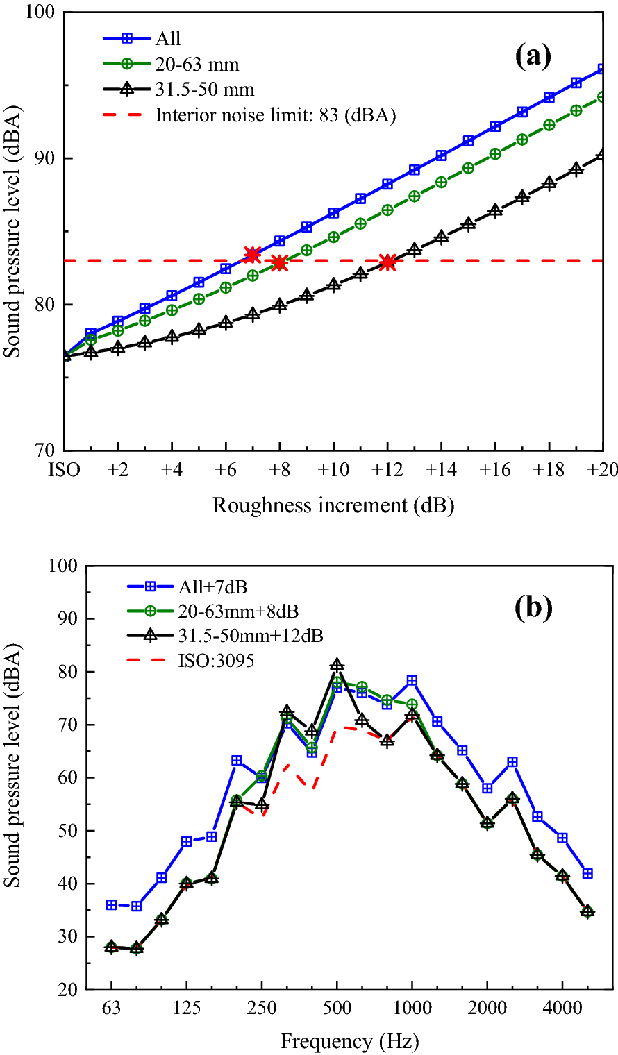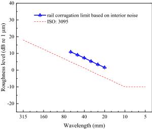 Severe rail roughness leads to a series of problems in metro systems, particularly the vehicle noise problem. To ensure a better acoustic environment, rail roughness control is therefore one of the main concerns for the metro operators. But the existing roughness acceptance criteria are not suitable for metro interior noise control. It is an appropriate method to determine the rail roughness limit based on interior noise. A rail roughness acceptance criterion based on metro interior noise is accordingly proposed in this paper. The relationship between rail roughness and interior noise can be derived with wheel-rail noise as link. With this objective, a combined test and simulation method is adopted. A validated wheel-rfigil noise prediction model is thus established to determine the relationship between rail roughness and wheel-rail noise. Moreover, the transfer function of wheel-rail noise to interior noise is developed based on extensive field test. Using this method, the noise sensitivity to roughness wavelength and acceptance criteria at different speeds and track structures are investigated. Finally, an eclectic rail corrugation acceptance criterion on curved track is suggested in consideration of practical application.