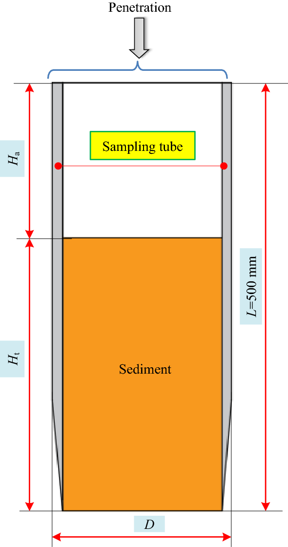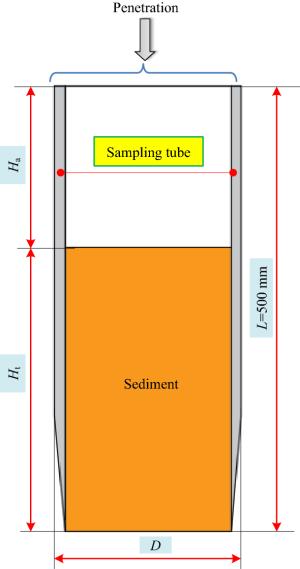 Sediments in the seabed hold vital clues to the study of marine geology, microbial communities and history of ocean life, and the remote operated vehicle (ROV) mounted tubular sampling is an important way to obtain sediments. However, sampling in the seabed is a particularly difficult and complicated task due to the difficulty accessing deep water layers. The sampling is affected by the sampler's structural parameters, operation parameters and the interaction between the sampling tube and sediments, which usually results in low volume and coring rate of sediments obtained. This paper simulated the soft viscous seabed sediments as non-Newtonian Herschel-Bulkley viscoplastic fluids and established a numerical model for the tubular sampling based on the volume of fluid (VOF) method. The influence rules of the sampling tube diameter, drainage area rate, penetration velocity, and sediments dynamic viscosity on coring rate and volume were studied. The results showed that coring volume was negatively correlated with all the parameters except the sampling tube diameter. Furthermore, coring rate decreased with increases in penetration velocity, drainage area rate, and sediments dynamic viscosity. The coring rate first increased and then decreased with increasing of the sampling tube diameter, and the peak value was also influenced by penetration velocity. Then, based on the numerical simulation results, an experimental sampling platform was set up and real-world sampling experiments were conducted. The simulation results tallied with the experimental results, with a maximum absolute error of only 4.6%, which verified that the numerical simulation model accurately reflected real-world sampling. The findings in this paper can provide a theoretical basis for facilitating the optimal design of the geometric structure of the seabed sediments samplers and the parameters in the sampling process.