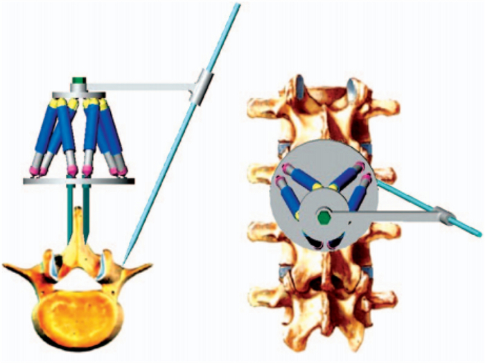 With the increasingly more extensive application of the medical surgical robot in the clinic, higher requirements have been put forward for medical robots. The bone-attached robot, a popular orthopedic robot in recent years, has a tendency of miniaturization and refinement. Thus, a bone-attached parallel manipulator (PM) based on 6-UCU (universal-cylindrical-universal) configuration is proposed, which is characterized by small volume, compact structure, high precision and six-dimensional force feedback. To optimize the structure and make it more compact, the workspace of the 6-UCU PM is analyzed based on the analysis of three kinds of constraint, and workspace model is established through spherical coordinate search method. This study also analyzes the influence of structural parameters on workspace, which may contribute to improving the efficiency of design and ensuring small-sized robots possess relatively large workspace. Moreover, to improve the motion accuracy, an error modeling method is developed based on the structure of 6-UCU PMs. According to this established error model, the output pose error curves are drawn using MATLAB software when the structure parameters change, and the influence of the structure and pose parameters change on the output pose error of PMs is analyzed. The proposed research provides the instruction to design and analysis of small PMs such as bone-attached robots.