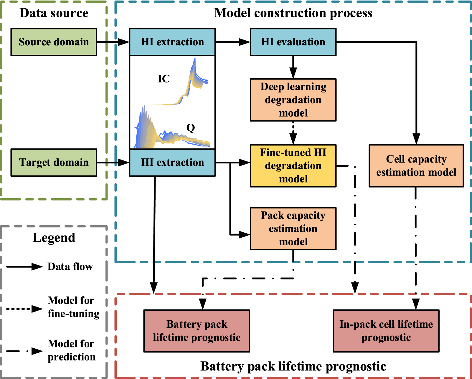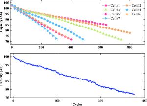 Aging diagnosis of batteries is essential to ensure that the energy storage systems operate within a safe region. This paper proposes a novel cell to pack health and lifetime prognostics method based on the combination of transferred deep learning and Gaussian process regression. General health indicators are extracted from the partial discharge process. The sequential degradation model of the health indicator is developed based on a deep learning framework and is migrated for the battery pack degradation prediction. The future degraded capacities of both battery pack and each battery cell are probabilistically predicted to provide a comprehensive lifetime prognostic. Besides, only a few separate battery cells in the source domain and early data of battery packs in the target domain are needed for model construction. Experimental results show that the lifetime prediction errors are less than 25 cycles for the battery pack, even with only 50 cycles for model fine-tuning, which can save about 90% time for the aging experiment. Thus, it largely reduces the time and labor for battery pack investigation. The predicted capacity trends of the battery cells connected in the battery pack accurately reflect the actual degradation of each battery cell, which can reveal the weakest cell for maintenance in advance.
