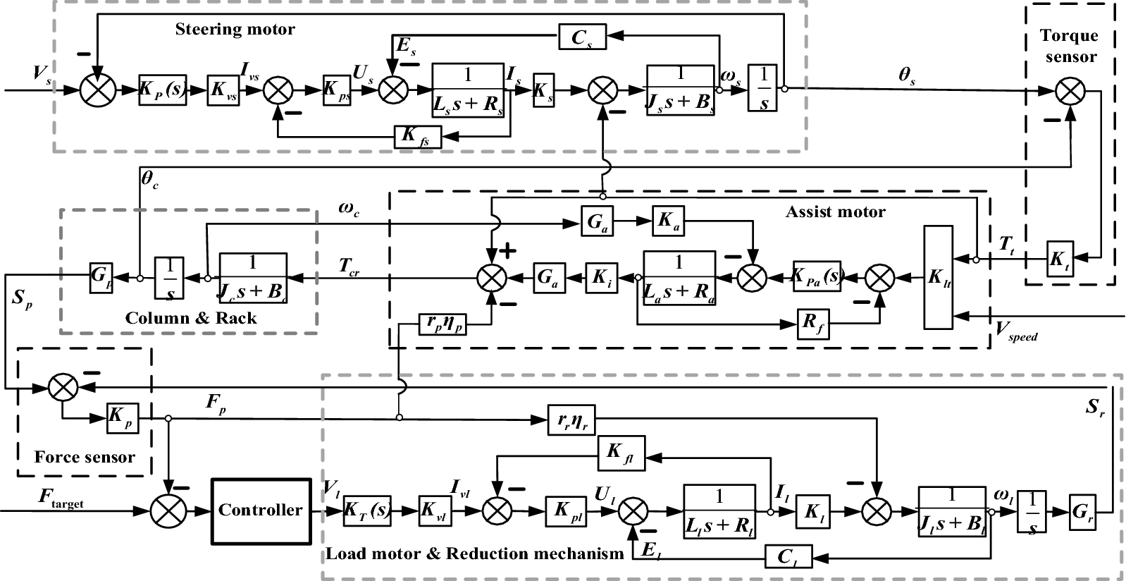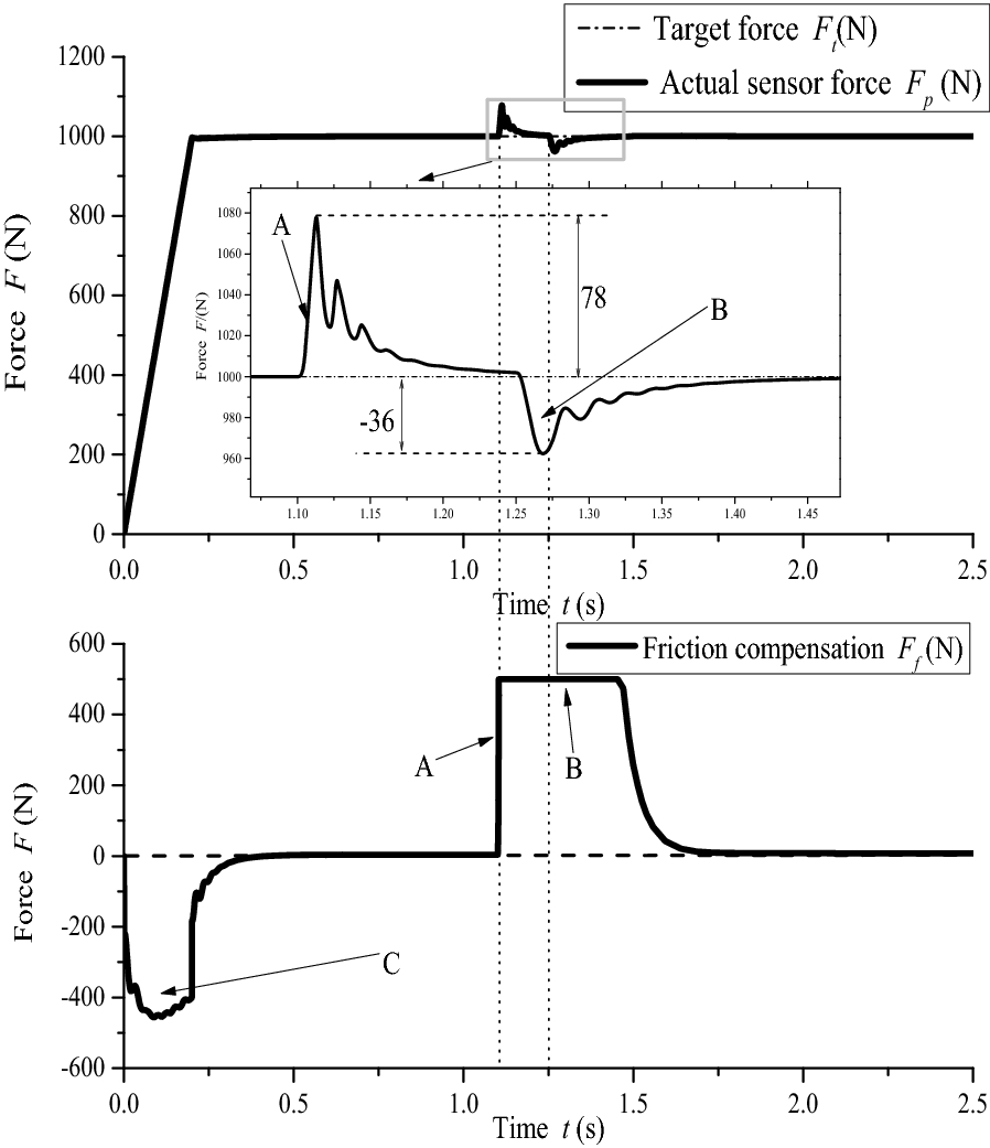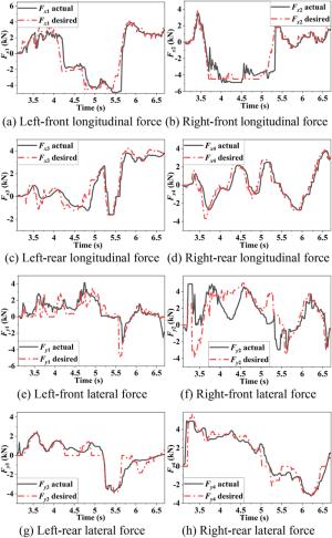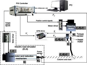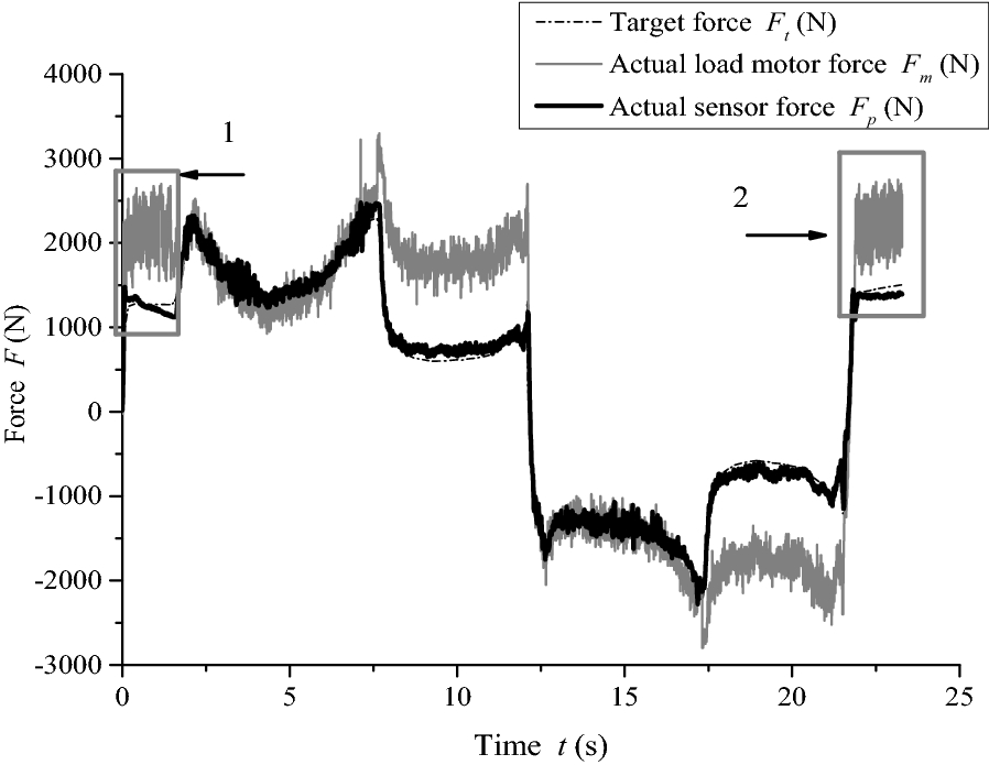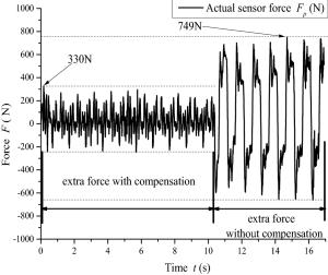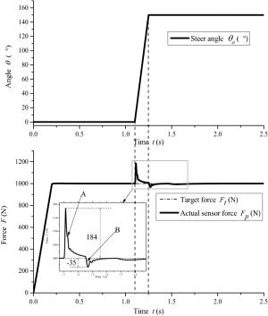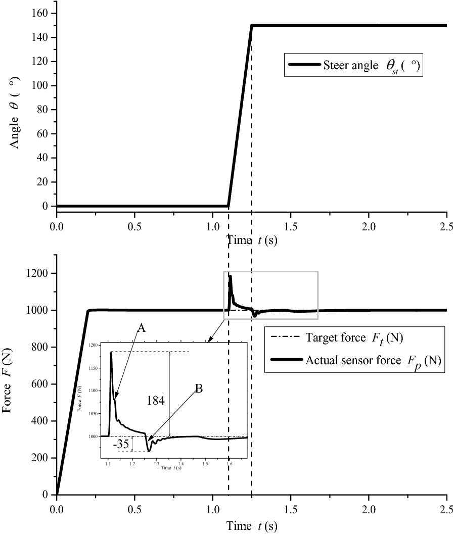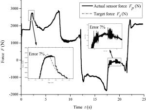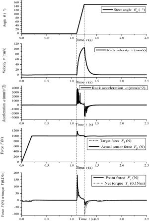Electric load simulator (ELS) systems are employed for electric power steering (EPS) test benches to load rack force by precise control. Precise ELS control is strongly influenced by nonlinear factors. When the steering motor rapidly rotates, extra force is directly superimposed on the original static loading error, which becomes one of the main sources of the final error. It is key to achieve ELS precise loading control for the entire EPS test bench. Therefore, a three-part compound control algorithm is proposed to improve the loading accuracy. First, a fuzzy proportional–integral plus feedforward controller with force feedback is presented. Second, a friction compensation algorithm is established to reduce the influence of friction. Then, the relationships between each quantity and the extra force are analyzed when the steering motor rapidly rotates, and a net torque feedforward compensation algorithm is proposed to eliminate the extra force. The compound control algorithm was verified through simulations and experiments. The results show that the tracking performance of the compound control algorithm satisfies the demands of engineering practice, and the extra force in the ELS system can be suppressed by the net torque corresponding to the actuator's acceleration.
