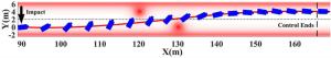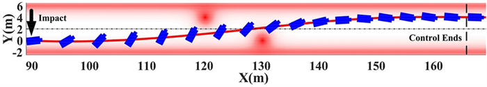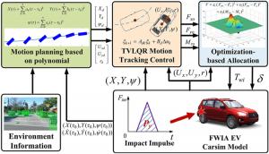 There is an increasing awareness of the need to reduce traffic accidents and fatality due to vehicle collision. Post-impact hazards can be more serious as the driver may fail to maintain effective control after collisions. To avoid subsequent crash events and to stabilize the vehicle, this paper proposes a post-impact motion planning and stability control method for autonomous vehicles. An enabling motion planning method is proposed for post-impact situations by combining the polynomial curve and artificial potential field while considering obstacle avoidance. A hierarchical controller that consists of an upper and a lower controller is then developed to track the planned motion. In the upper controller, a time-varying linear quadratic regulator is presented to calculate the desired generalized forces. In the lower controller, a nonlinear-optimization-based torque allocation algorithm is proposed to optimally coordinate the actuators to realize the desired generalized forces. The proposed scheme is verified under comprehensive driving scenarios through hardware-in-loop tests.