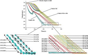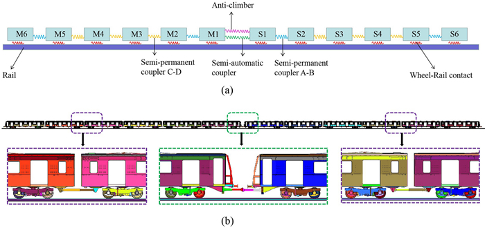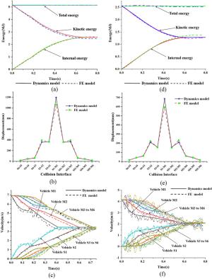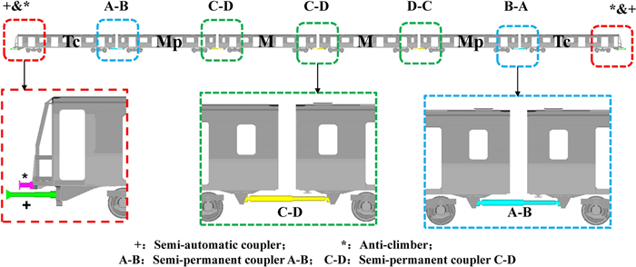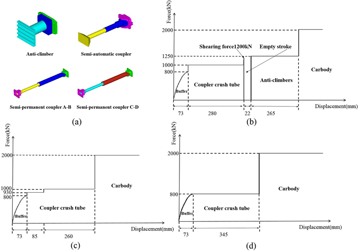 To obtain improved comprehensive crashworthiness criteria for a B-type subway train, the influence laws of the vehicle design collision weight M and empty stroke D on the train's collision responses were investigated, and multi-objective optimization and decision-making were performed to minimize TS (total compression displacement along the moving train) and TAMA (the overall mean acceleration along the moving train). Firstly, a one-dimensional train collision dynamics model was established and verified by comparing with the results of the finite element model. Secondly, based on the dynamics model, the influence laws of M and D on the collision responses, such as the energy-absorbing devices' displacements and absorbed energy, vehicles' velocity and acceleration, TS, TAMA and the coupling correlation effect were investigated. Then, surrogate models for TS and TAMA were developed using the optimal Latin hypercube method (OLHD) and response surface method (RSM), and multi-objective optimization was conducted using the particle swarm optimization algorithm method (MPOSO). Finally, the entropy method was used to obtain the weight coefficients for TS and TAMA, and multi-objective decision-making was performed. The results indicate that D and M significantly affect the compression displacements and energy absorption of the first three collision interfaces, but have limited impact on the last three collision interfaces. The velocity versus time curves of vehicle M1 and M2 are shifted and parallel with different D. However, the velocity versus time curves of all the vehicles are shifted but gradually divergent with different M. The maximum collision instantaneous accelerations of the vehicles are directly determined by M, but are only slightly affected by D. Under the coupling effect, all concerned collision responses are strongly correlated with M; however, the responses are weakly correlated with D except for the compression displacement at the M2-M3 collision interface and the maximum collision instantaneous acceleration of vehicle M2. The comprehensive crashworthiness criteria of the B-type subway train were significantly improved after multi-objective optimization and decision-making. The research provides more theoretical and engineering application references for the subway train crashworthiness design.