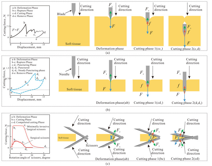 Biological soft tissues manipulation, including conventional (mechanical) and nonconventional (laser, waterjet and ultrasonic) processes, is critically required in most surgical innervations. However, the soft tissues, with their nature of anisotropic and viscoelastic mechanical properties, and high biological and heat sensitivities, are difficult to manipulated. Moreover, the mechanical and thermal induced damage on the surface and surrounding tissue during the surgery can impair the proliferative phase of healing. Thus, understanding the manipulation mechanism and the resulted surface damage is of importance to the community. In recent years, more and more scholars carried out researches on soft biological tissue cutting in order to improve the cutting performance of surgical instruments and reduce the surgery induced tissue damage. However, there is a lack of compressive review that focused on the recent advances in soft biological tissue manipulating technologies. Hence, this review paper attempts to provide an informative literature survey of the state-of-the-art of soft tissue manipulation processes in surgery. This is achieved by exploring and recollecting the different soft tissue manipulation techniques currently used, including mechanical, laser, waterjet and ultrasonic cutting and advanced anastomosis and reconstruction processes, with highlighting their governing removal mechanisms as well as the surface and subsurface damages.