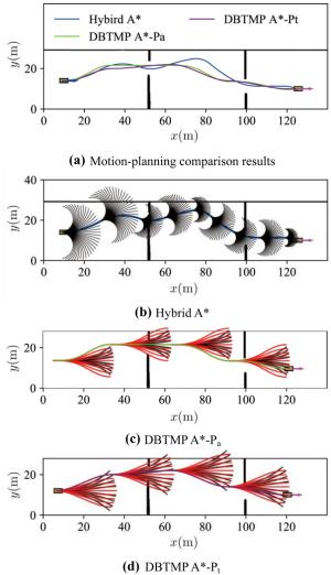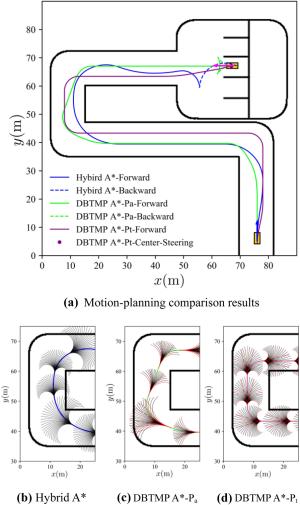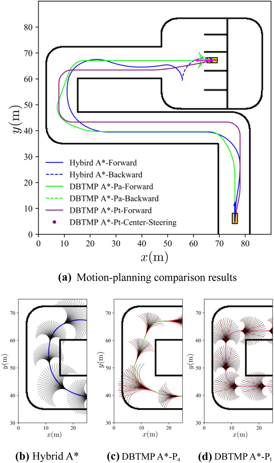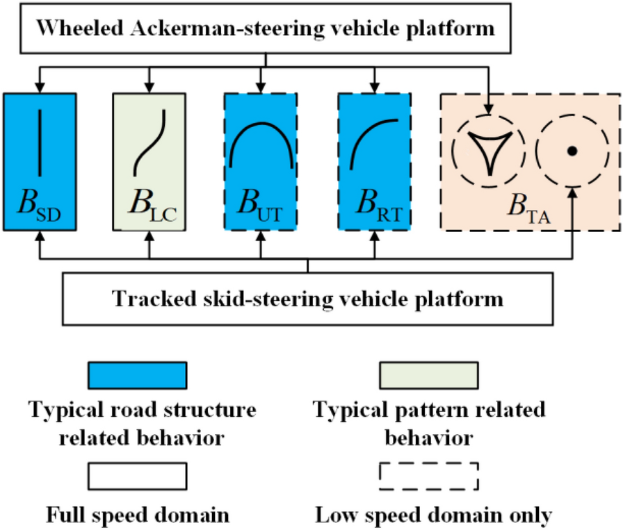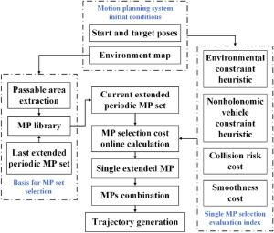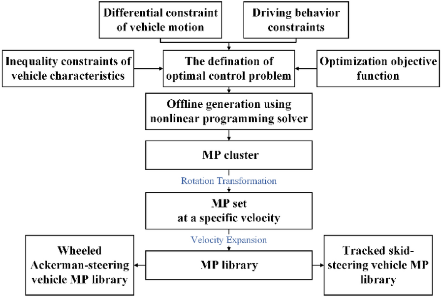 To integrate driver experience and heterogeneous vehicle platform characteristics in a motion-planning algorithm, based on the driver-behavior-based transferable motion primitives (MPs), a general motion-planning framework for offline generation and online selection of MPs is proposed. Optimal control theory is applied to solve the boundary value problems in the process of generating MPs, where the driver behaviors and the vehicle motion characteristics are integrated into the optimization in the form of constraints. Moreover, a layered, unequal-weighted MP selection framework is proposed that utilizes a combination of environmental constraints, nonholonomic vehicle constraints, trajectory smoothness, and collision risk as the single-step extension evaluation index. The library of MPs generated offline demonstrates that the proposed generation method realizes the effective expansion of MP types and achieves diverse generation of MPs with various velocity attributes and platform types. We also present how the MP selection algorithm utilizes a unique MP library to achieve online extension of MP sequences. The results show that the proposed motion-planning framework can not only improve the efficiency and rationality of the algorithm based on driving experience but can also transfer between heterogeneous vehicle platforms and highlight the unique motion characteristics of the platform.