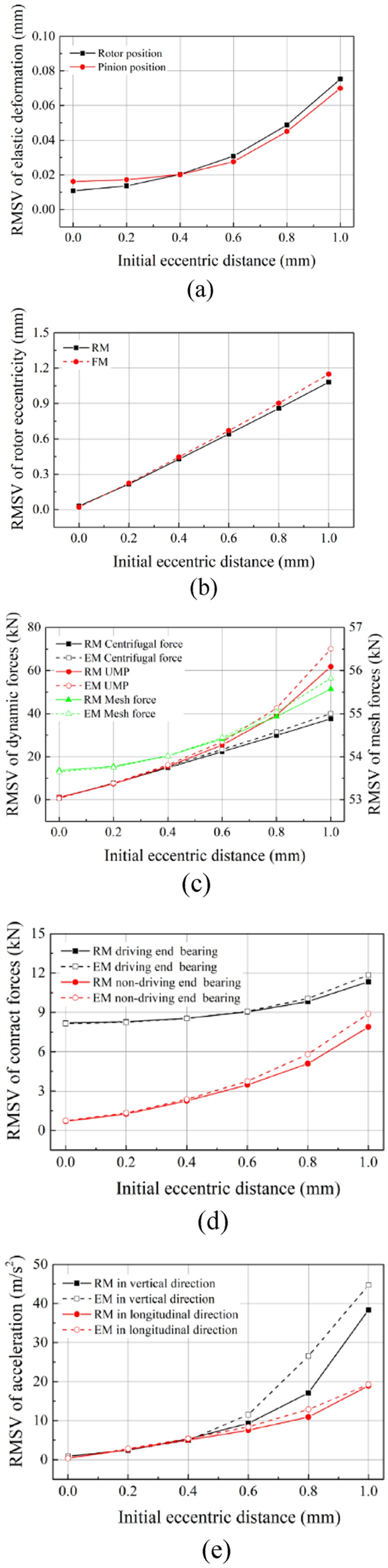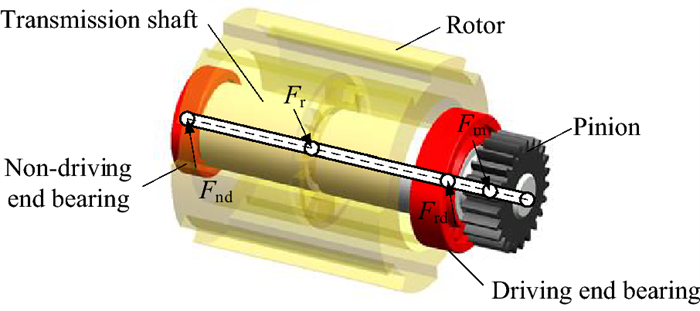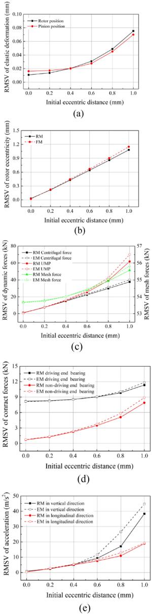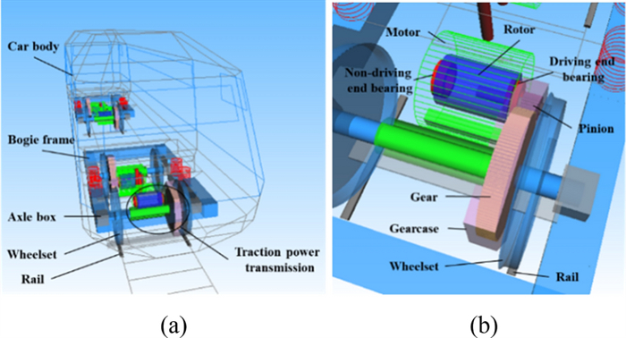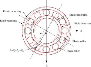 The locomotive traction motor is described as a rotor-bearing system coupling the kinetic equations of the traction shaft and its support bearings with the determination of their elastic deformations in this study. Under the effect of excitations induced by the dynamic rotor eccentric distance and time-varying mesh stiffness, the elastic structure deformations of the shaft and support bearings are formulated in the vibration environment of the locomotive. In addition, the nonlinear contact forces between the components of the rolling bearing, the lubricating oil film, and radial clearance are comprehensively considered in this study. The results indicate that the elastic deformations of the shaft and bearings can change the dynamic responses of the traction motor and its support bearings. There are large differences between the ranges of the rotor motion calculated by the rigid and the flexible traction motor models when the intensified wheel-rail interaction is considered. With the increase of the rotor eccentricity, the results underscore the role of the elasticity of traction shaft and support bearings in dynamic researches of the traction motor. The critical value of the initial eccentric distance for the rub-impact phenomenon decreases from 1.23 mm to 1.15 mm considering the flexible effect of the shaft and bearings. This dynamics model of the traction motor can provide more accurate and reasonable simulation results for correlational dynamic researches.